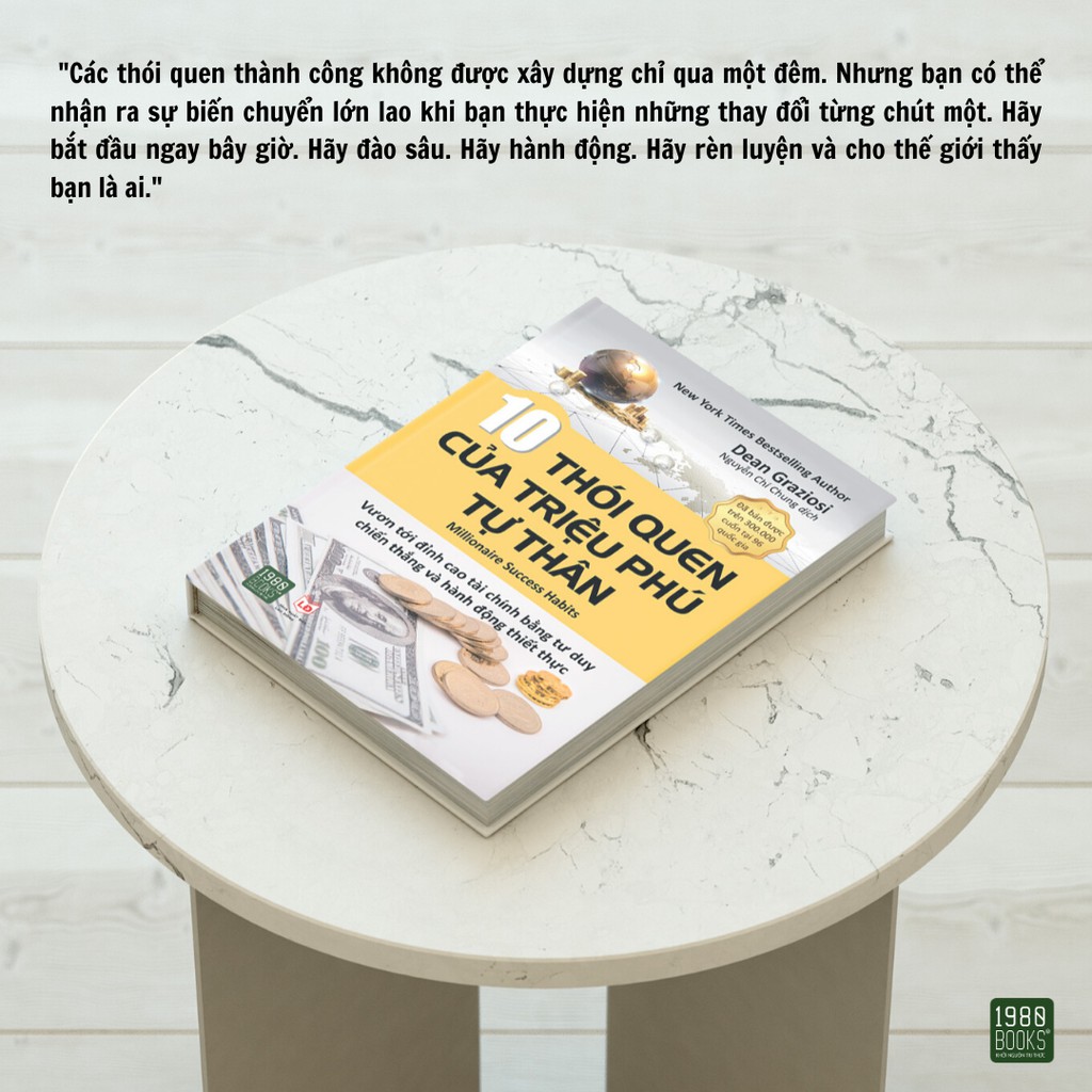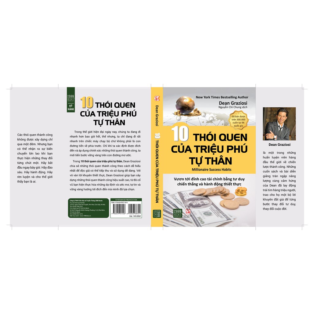 Công ty phát hành: 1980 Books Tác giả: Dean Graziosi Nhà xuất bản: NXB Lao Động. Năm xuất bản: 2020 Số trang: 362 Giới thiệu sách: Trong thế giới hiện đại ngày nay, chúng ta đang đi nhanh hơn bao giờ hết, thế nhưng ta chỉ đang đi rất nhanh trên chiếc máy chạy bộ chứ không phải trên con đường tiến về phía trước. Nhanh chỉ có tác dụng khi ta đi đúng đường, còn không, nó chỉ khiến ta dễ dàng lạc lối mà thôi. Tuy nhiên, nếu ta xác định được đích đến và áp dụng những thói quen thành công, ta sẽ tiến bước vững vàng trên con đường mình lựa chọn nhanh hơn bao giờ hết. Trong “10 THÓI QUEN CỦA TRIỆU PHÚ TỰ TH N’’, Dean Graziosi chia sẻ những thói quen này theo cách dễ hiểu nhất để độc giả có thể tiếp thu và sử dụng dễ dàng. Dù bạn là ai, một sinh viên mới tốt nghiệp đang tìm công việc đầu đời, một chuyên viên văn phòng, hay một doanh nhân đầy hoài bão, hẳn sẽ có những lúc bạn nhận thấy một “khoảng trống” đang ngăn cách bạn của hiện tại với người mà bạn mong muốn trở thành trong tương lai. Để thu hẹp, thậm chí xóa đi khoảng cách ấy, Dean Graziosi cung cấp cho bạn những công cụ đơn giản nhằm thay đổi các thói quen tiêu cực mà ta vẫn thực hiện thường nhật, chuyển sang những thói quen thành công hiệu suất cao và mang về những cơ hội mới, giúp bạn hiện thực hóa những dự định và ước mơ. Thông qua cách dẫn dắt dễ hiểu và bám sát với thực tế của Dean Graziosi, bạn sẽ học được cách làm một số điều như: Đi sâu vào nội tâm, khám phá “nguyên nhân hành động” sâu kín trong lòng bạn, củng cố nền tảng để bạn luôn vững bước, bất chấp mọi khó khăn và thử thách. Truy tìm và hạ gục “kẻ phản diện” đang lẩn trốn trong trái tim và tâm trí bạn. Khơi dậy những phẩm chất hàng đầu của bạn, phát huy tối đa những điểm mạnh thuộc về riêng bạn, nhờ đó liên tục giành lấy ưu thế trong những cuộc cạnh tranh… Các thói quen thành công không được xây dựng chỉ qua một đêm, nhưng bạn có thể nhận ra biến chuyển lớn lao mà những thói quen này mang lại, khi bạn thực hiện những thay đổi từng chút một. Bền bỉ từ bỏ thói quen tiêu cực và hình thành thói quen tích cực chắc chắn không phải một quá trình dễ dàng, nhưng nó chính là chiến lược đã giúp những người thành công nhất trên thế giới đạt được mục tiêu của họ. Sau khi đọc 10 thói quen của triệu phú tự thân, bạn đã nắm được chìa khóa trong tay. Hãy đào sâu. Hãy hành động. Hãy rèn luyện và cho thế giới thấy bạn là ai.