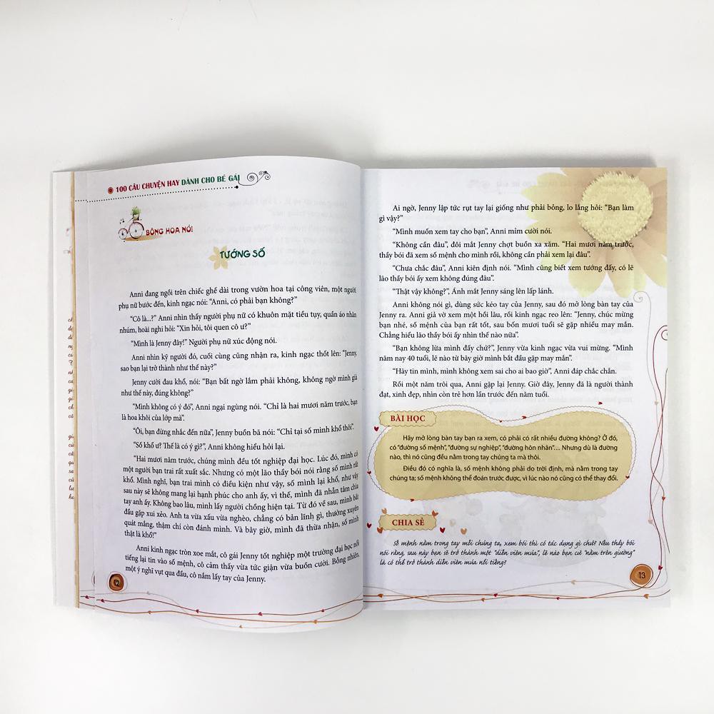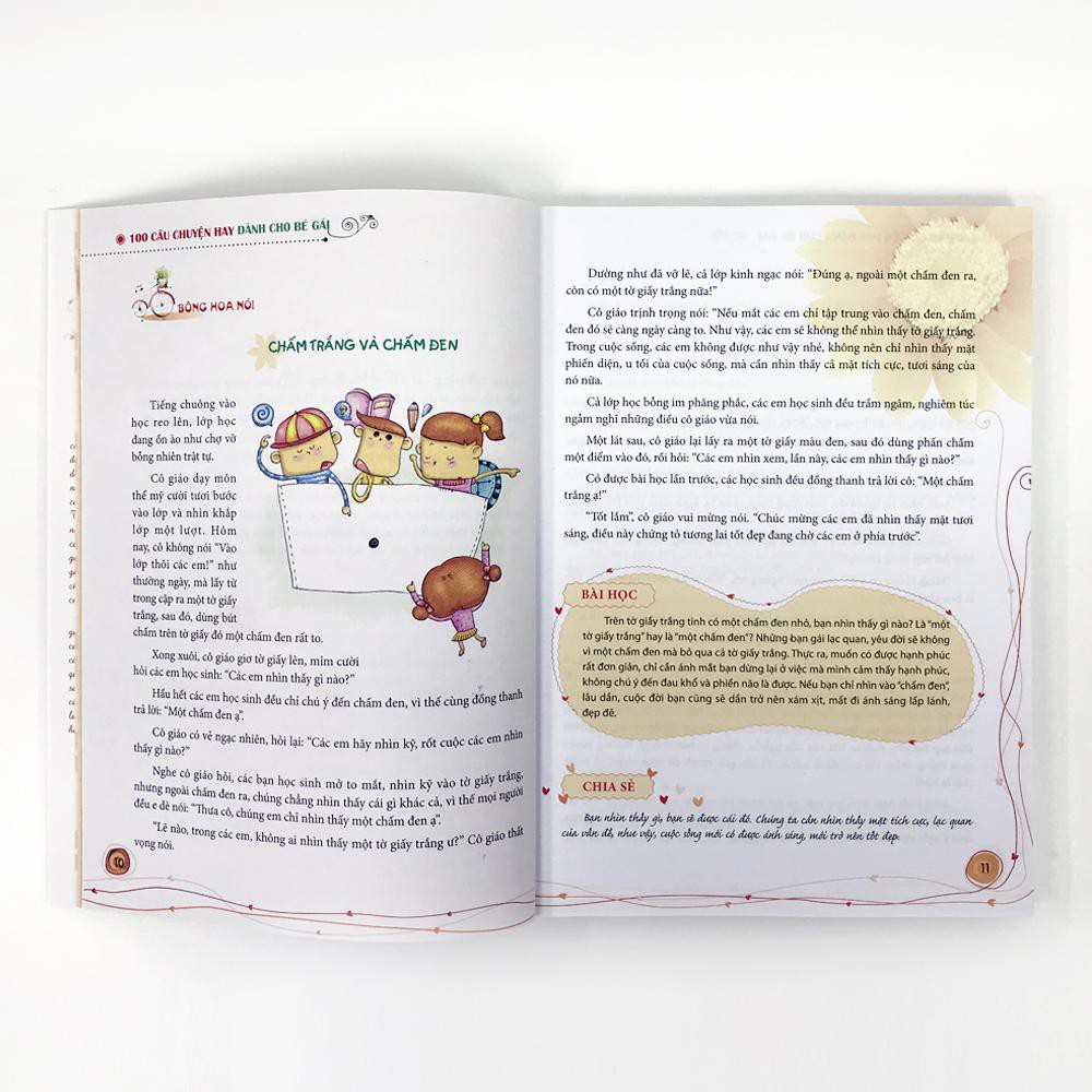 100 Câu Chuyện Hay Dành cho Bé Trai Và bé Gái (2 quyển lẻ tùy chọn) Là một trong những cuốn sách bán chạy nhất hiện nay. Bố mẹ không thể nào bỏ qua cuốn sách này khi dành con. Cuốn sách này giúp bé vừa học vừa chơi. Bố mẹ hãy theem vào tửu sách của các bạn nhỏ nhé !. 1.100 Câu Chuyện Hay Dành Cho Bé Trai Cuốn này bao gồm các mẩu chuyện ngắn về các loài vật hay về các bạn nhỏ. Mỗi truyện là một bài học về lòng dũng cảm, sự kiên cường, mạnh mẽ dành cho bé trai để giúp các bé học được những đức tính ấy từ các câu chuyện. Cuốn sách này thích hợp với các bé trên 3 tuổi vì nó rất nhiều chữ và không có hình ảnh minh họa nhiều. Song song với cuốn này là cuốn 100 câu chuyện hay dành cho bé gái, các bố mẹ nên mua cả 2 cuốn để bồi dưỡng lòng dũng cảm cho bé trai và sự nhân hậu cho bé gái. Quyển sách là tập hợp 100 câu chuyện hay dành cho các bé trai xoay với nội dung xoay quanh các truyện về 12 loài động vật là sư tử, cá heo, chó ngao, quạ đen, trâu, sói, nhện, hổ, kiến, chim ưng, ngựa, lạc đà. Qua các truyện các em nhỏ sẽ học hỏi và rèn luyện được các đức tính tốt là dũng cảm và kiên cường như sư tử, thông minh và nhạy bén như cá heo, trung thành và đáng tin cậy như chó ngao, biết ơn và báo đáp như quạ đen, đôn hậu và khoan dung như trâu, chiến đấu bền bỉ như sói, không bao giờ từ bỏ như nhện, độc lập và tự chủ như hổ, đoàn kết như kiến, thay đổi bản thân như chim ưng, có lý tưởng như tuấn mã, chịu thương chịu khó như lạc đà. Các đức tính trên rất cần thiết cho các em nhỏ không chỉ riêng các bé trai mà các bé gái cũng nên học hỏi qua những câu chuyện trong quyển sách này.”Luôn đứng đầu trong các cuộc thi không có nghĩa là sau này sẽ thành công…” Cuốn sách đã lựa chọn những truyền thuyết thần bí về 12 loài động vật như: dũng cảm kiên cường như sư tử…. 2. 100 Câu Chuyện Hay Dành Cho Bé Gái Cuốn sách trân trọng giới thiệu đến đọc giả truyền thuyết về vẻ đẹp của 12 loài hoa cùng với 88 câu chuyện nhỏ liên quan. 100 câu chuyện trong tác phẩm chin lhà 100 món quà dành tặng các công chúa nhỏ. Hi vọng, sau khi đọc xong ấn phẩm này, các bạn gái cũng sẽ kiên cường, dũng cảm, lạc quan, lương thiện và phóng khoáng như những loài hoa…từng bước hướng đến sự hoàn mỹ. Người con gái trang điểm xinh như hoa chưa chắc đã hoàn hảo; Một nữ sinh luôn đạt điểm cao trong các kì thi cũng chưa chắc đã toàn mỹ. Phẩm chất tốt đẹp của mỗi người không phải là thiên phú mà là kết quả của quá trình rèn luyện, bồi dưỡng sau này. Trên đời này, không có ai là hoàn hảo cả, nhưng một cô gái có mơ ước, có phẩm chất cao quý….. —-++++—- Công ty phát hành MINHLONGbook Tác giả Bành Phàm Ngày xuất bản 08-2013 Kích thước 17 x 24 cm Nhà xuất bản Nhà Xuất Bản Văn Học Loại bìa Bìa mềm Số trang Quyển 1: 120, Quyển 2: 116 ——- #ehon, #flashcard, #sách-truyệnthiếunhi, #btscomic, #thẻhọcthôngminhchobé, #thẻhọcthôngminh, , #ăndặm, #bộthẻhọcthôngminh, #truyệncổtích, #ăndặmkiểunhật, #ăndặmkhôngphảilàcuộcchiến, #đểconđượcốm, , #sáchlậtmở, #sáchăndặm, #truyệntranh, #10vạncâuhỏivìsao, #báchkhoatoànthưchobé, #sáchchiếubóng, #flashcardstiếnganh, #glenndoman, #sáchnuôiconkhôngphảicuộcchiến, #flashcard, #thẻhọc, #combo, #sáchhay, #nhàsáchonline