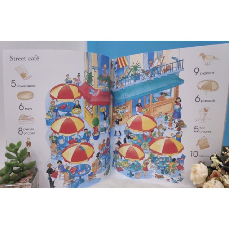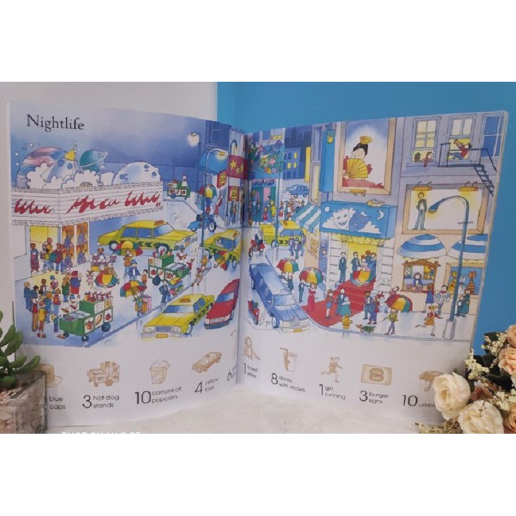 1. Giới thiệu Sách – 1001 Things To Spot In The Town Stickers Book Cuốn sách đặc biệt dành cho các bạn nhỏ thích dán sticker, qua đó học thêm nhiều từ tiếng Anh thú vị Các bé hãy dạo quanh thành phố nhộn nhịp, cùng tìm những đồ vật, hình ảnh… theo hướng dẫn trong bức tranh lớn ở mỗi trang sách nhé. Thông qua sách, các bé sẽ biết thêm nhiều từ vựng theo chủ điểm, và còn vận động đôi tay tăng tương tác nữa 2. Thông tin Sách – 1001 Things To Spot In The Town Stickers Book Bản giấy Nhà xuất bản: Usborne Publishing Ltd Năm xuất bản 2018 ISBN-10: 1409583376 ISBN-13: 978-1409583370 Số trang 32 trang và 6 trang sticker Kích thước 250 x 216mm