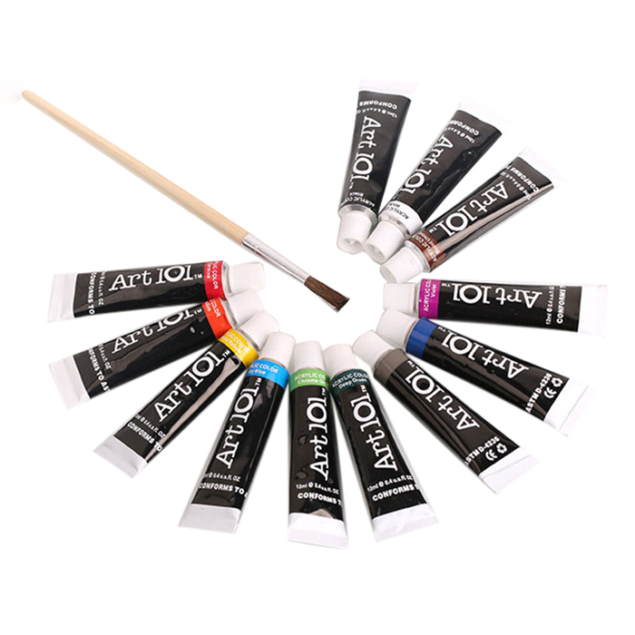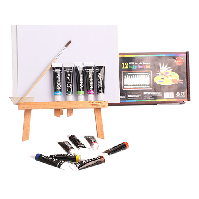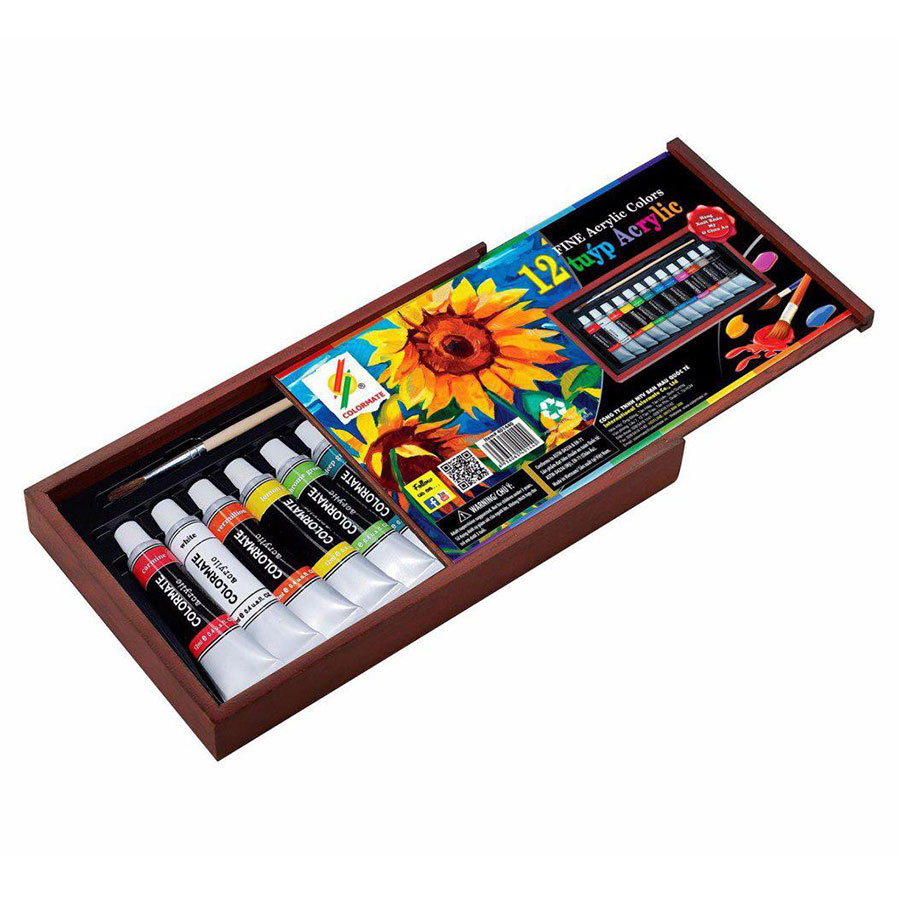 Hộp gỗ + 12 tuýt màu vẽ Acrylic Dùng để tô tượng, vẽ tranh trên khung vải canvas, trên vải cotton, trên gỗ, kính, sứ, giấy vẽ… Khi vẽ mau khô, bức tranh có màu bóng mượt, khó phai màu… cho tác phẩm đẹp hơn Giúp trẻ phát huy tốt nhất năng khiếu hội họa của mình 12 Tuýp Màu Vẽ Acrylic Nếu trẻ có thiên hướng với môn hội họa ba mẹ nên khuyến khích và tạo mọi điều kiện cho trẻ. Vì đây là giai đoạn quan trọng để trẻ hình thành tính cách. Hãy để trẻ dùng tất cả năng lượng để học và để chạm tới những ước mơ của mình. Được sự động viên và hỗ trợ của ba mẹ, trẻ sẽ có động lực và niềm tin để học tốt, rèn luyện tốt và phát triển được năng khiếu của mình tốt nhất. CHI TIẾT – Hộp gỗ + 12 tuýt màu vẽ Acrylic. – Dùng để tô tượng, vẽ tranh trên khung vải canvas, trên vải cotton, trên gỗ, kính, sứ, giấy vẽ… – Khi vẽ mau khô, bức tranh có màu bóng mượt, khó phai màu… cho tác phẩm đẹp hơn. – Giúp trẻ phát huy tốt nhất năng khiếu hội họa của mình. HƯỚNG DẪN SỬ DỤNG: Cho một ít màu ra khay, có thể dùng cọ thấm nước hoặc cọ khô khấy đều màu vẽ theo tỷ lệ thích hợp cho tác phẩm. Đậy nắp kỹ sau khi sử dụng sẽ không làm cho màu bị khô lại.