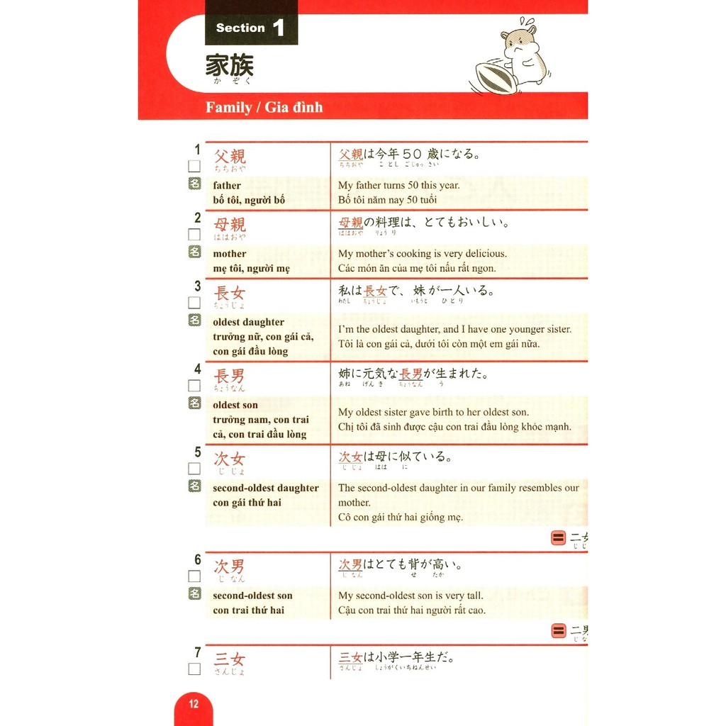 Bộ sách học từ vựng cấp độ N5 ~ N1 dành cho Kỳ thi Năng lực Nhật ngữ. Bộ sách gồm 5 cuốn: N1, N2, N3, N4, N5, tập hợp các từ vựng xuất hiện thường xuyên trong các kỳ thi Năng lực Nhật ngữ. Các từ vựng này được chia theo từng chủ đề, đi kèm các câu ví dụ. Đặc biệt bộ sách có kèm theo bản dịch Anh – Trung – Việt, rất tiện cho các bạn tự học ở nhà.Mời bạn đón đọc. Tác giả: Arc Academy Nhà Xuất Bản: Nxb Trẻ Nhà Phát Hành: NXB Trẻ Năm Xuất Bản: 2019 Số Trang: 294