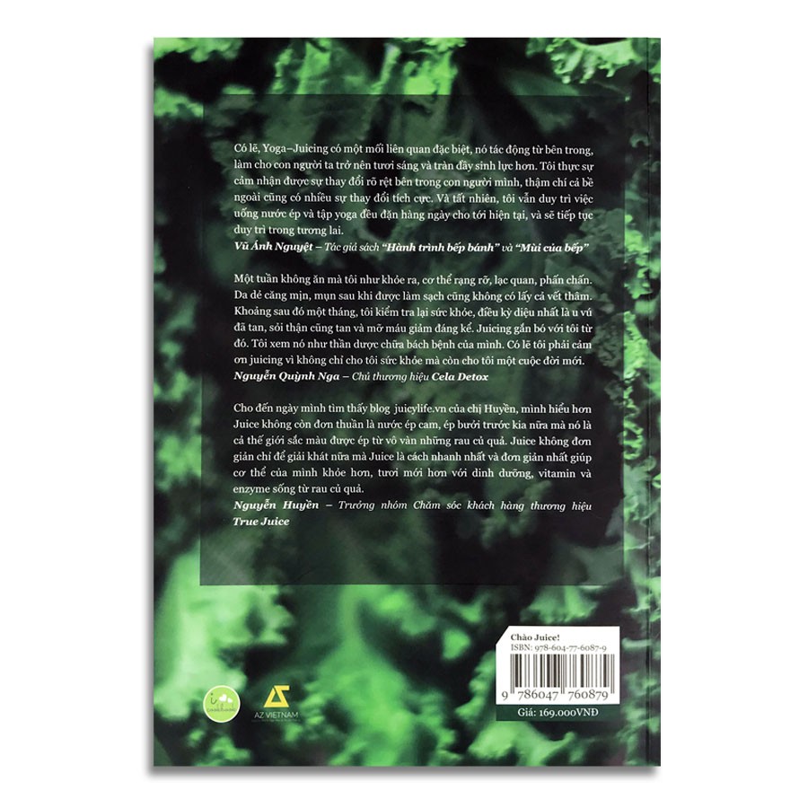 Sách – Chào Juice! – 40 công thức nước ép cho vẻ đẹp tươi mới, khỏe khoắn từ bên trong “Chào Juice” là một cuốn sách được tạo nên bởi tình yêu và đam mê với juice của Thanh Huyền- người con gái yêu yoga, nghiện juice, mang trong mình một năng lượng bền bỉ, cùng mong muốn lan tỏa phong cách sống tích cực, lành mạnh tới cộng đồng. Ngoài những thông tin cơ bản để bạn hiểu và có thể làm nước ép một cách khoa học, hiệu quả và đạt giá trị dinh dưỡng một cách tối đa, “Chào Juice” còn chứa đựng hơn 40 công thức được nghiên cứu cân bằng dưỡng chất và hương vị, sự phong phú và đa dạng, với những nguyên liệu hoàn toàn có thể mua được tại các siêu thị và cửa hàng thực phẩm tại Việt Nam để bạn có thể mày mò, khám phá cả ngày để có những công thức Juice tốt lành và độc đáo. Từ những cuộc đời được thay đổi tích cực hơn nhờ Juice mà Huyền được biết cũng như chính trải nghiệm của bản than mình, chị luôn muốn truyền tải điều tốt đẹp đó đến càng nhiều người xung quanh càng tốt, để có thể góp phần cùng bạn tạo nên cuộc sống luôn đầy màu sắc, giàu hương vị, và khác biệt mỗi ngày vì sống khỏe mạnh mỗi ngày đó cũng chính là một niềm vui!” ——**—– Công ty phát hành I Love Cookbooks Nhà xuất bản Nhà Xuất Bản Thế Giới Tác giả Trần Thanh Huyền Ngày xuất bản 11-2018 Kích thước 16 x 24 cm Số trang 221 Loại bìa Bìa mềm ——- Sách luôn sẵn kho số lượng lớn Nói không với sách lậu! Sách đảm bảo chuẩn NXB, mới 100%, được đóng bọc cẩn thận, giao hàng nhanh chóng! #sachthamkhao , #sachhaychobe , #sachhay , #sachandam , #sachnuoidaycon , #sachkinhte , #sachthieunhi , #sachvanhoc , #tieuthuyet , #ngontinh , #ngoaingu