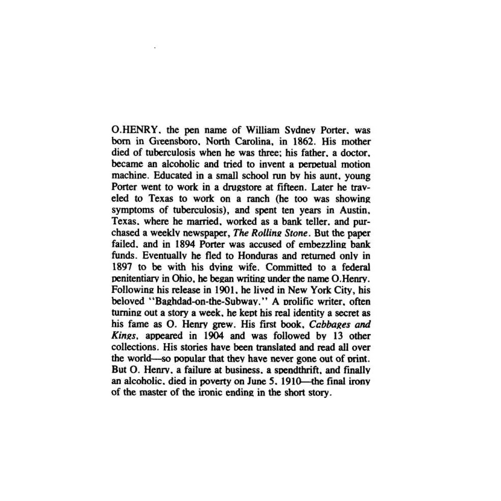 Tên Nhà Cung Cấp Công Ty Sách Báo Xunhasaba Tác giả O. Henry Nhà xuất bản HarperCollins Publishers Năm xuất bản 2007 Kích thước 17.2 x 10.5 cm Số trang 424 Hình thức Bìa Mềm Born in Greensboro, North Carolina, in 1862, William Sydney Porter was the son of a neurotic, largely self-trained doctor and a tubercular mother, of good family. His maternal grandfather had been a successful newspaper editor; his mother had a degree from a women’s college. His mother died of tuberculosis when he was three, and his paternal grandmotherâand especially his father’s sisterâraised the boy. His father drifted into drinking, worked at a perpetual-motion machine, and died in 1886, as much out of contact with the world at large as with his son. His grandmother was a firm, outspoken woman who, after her husband’s death, ran a boardinghouse. His aunt ran a small private school where Porter got what education he received; she also pushed him to read and to read well. “I did more reading between my thirteenth and nineteenth years than I have done in all the years since,” he noted, “and my taste at that time was much better than it is now, for I used to read nothing but the classics…. I never have time to read now. I did all my reading before I was twenty.” At age 15, he was apprenticed as a pharmacist in a drug store owned and operated by a paternal uncle, and his formal schooling was over. At age 19, he was a licensed pharmacist; within a year, showing signs of the tuberculosis that had killed his mother, he was sent to a sheep and cattle ranch in southwest Texas where outdoor life might arrest the disease. After working on the ranch for two years, he moved to Austin, Texas, worked at assorted jobs, and in 1887 married the daughter of a successful Austin businessman. He had always been interested in drawing and sketching; now he secured a reasonably well-paying post as a draftsman in the Texas Land Office and began to raise a family. His first child, a son, died a few hours after birth; his second child, a daughter, survived her father. His wife became ill with tuberculosis, Porter lost his drafting post, took a job as a bank teller, and tried to establish himself as a humorist, writing both for the Houston Post and also buying a printing press and the rights to a small scandal sheet, promptly renamed The Rolling Stone. It was an eight-page affair, for which he wrote most of the material and did the typesetting and printing, simultaneously keeping his bank post. The magazine did not flourish: Porter slid into a life of dissolution and illicit borrowing from various bank accounts. His father-in-law repaid his embezzlement, and a jury acquitted him on criminal charges, but the Federal bank examiners moved for a new trial. The Rolling Stone died in 1895, Porter was rearrested in 1896, and promptly fled, first to New Orleans and then to Honduras. He stayed two years. Roughly a year later, learning that his wife was near death, he returned. She died a few months afterward; the next year, 1898, he was tried, convicted, and sentenced to five years in the penitentiary in Columbus, Ohio, where he, in fact, served over three years. Jail was deeply traumatic for him, though he received favorable treatment as a pharmacist and was given reasonable freedom to continue writing. No one knows exactly how or why he transformed himself, in those years, into what became his internationally celebrated pen name, O.Henry, nor does anyone know precisely what (if anything) the pseudonym is supposed to mean. Clearly, the important thing is that it is a pseudonym. The use of the name O.Henry was a way of separating himself from much of the reality he had no inclination to deal with. His letters to his small daughter never revealed why he was away from home or, indeed, where he was, but the letters he wrote to his in-laws indicate keen awareness of prison conditions. Though fellow prisoners urged him to write on such topics, he neither did nor would. “I will forget that I ever breathed behind these walls,” he affirmed even before his discharge. His personal disguise, equally clearly, melted into the many disguises and transformations of his fiction, in which from the start nothing was ever exactly what it seemed to be and the laws of causation scarcely seem to hold. Secrets are magical charms in the world of his fiction, as after his release from prison the secret of his criminal conviction became a potentially destructive spell that had to be forever contained.