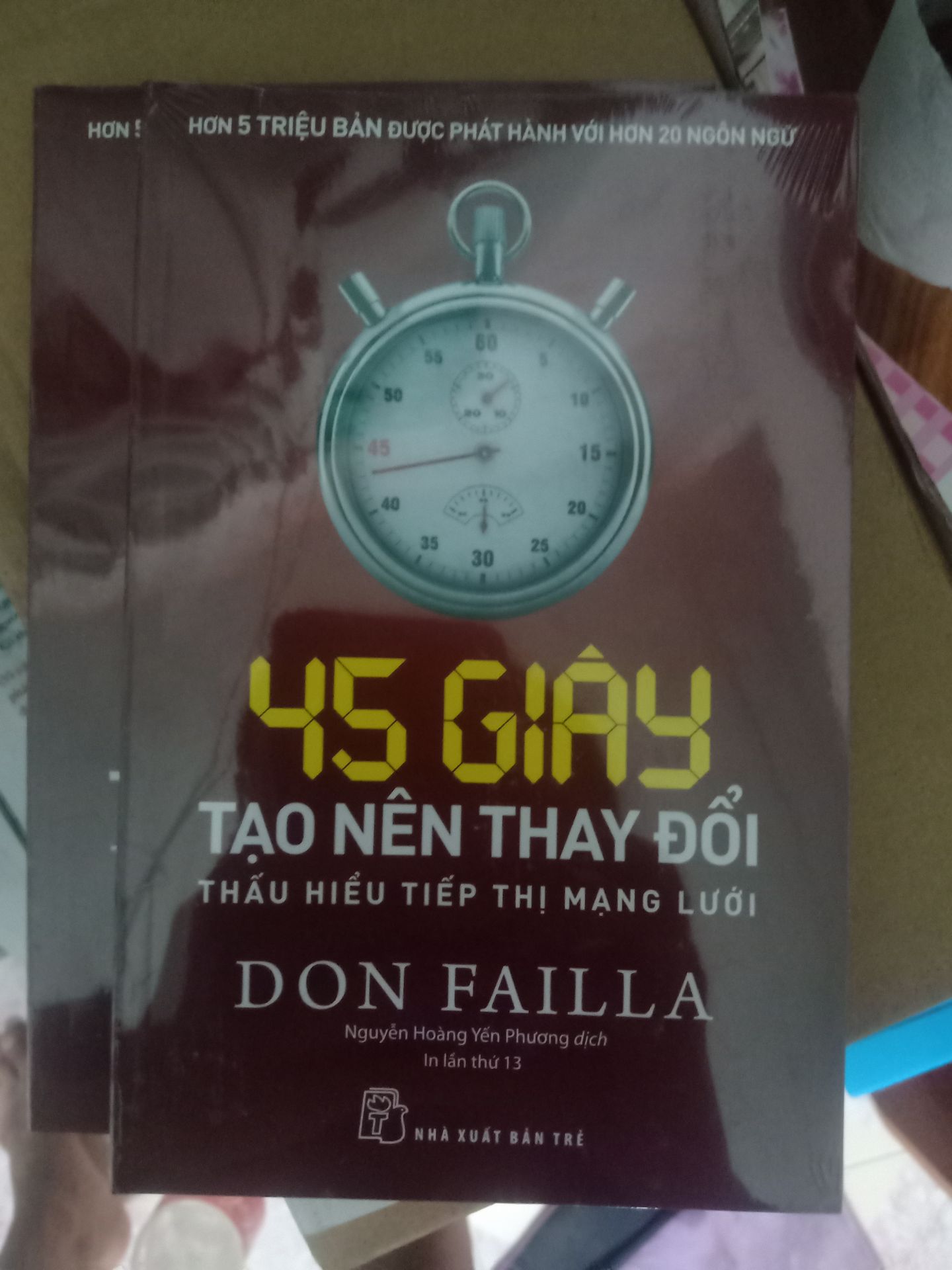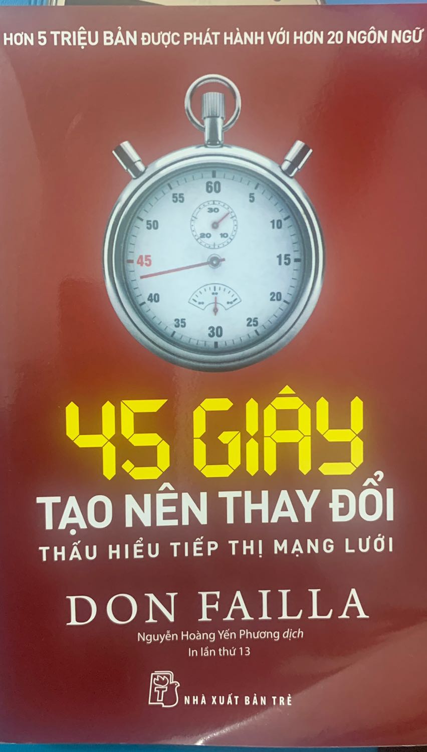 Sách 45 Giây Tạo Nên Thay Đổi – Thấu Hiểu Tiếp Thị Mạng Lưới, Tác giả: Don Failla, Công ty phát hành NXB Trẻ Ngày xuất bản 01-2019 Kích thước 13 x 19 cm Loại bìa Bìa mềm Số trang 192 SKU 2646525728852 Nhà xuất bản NXB Trẻ.
