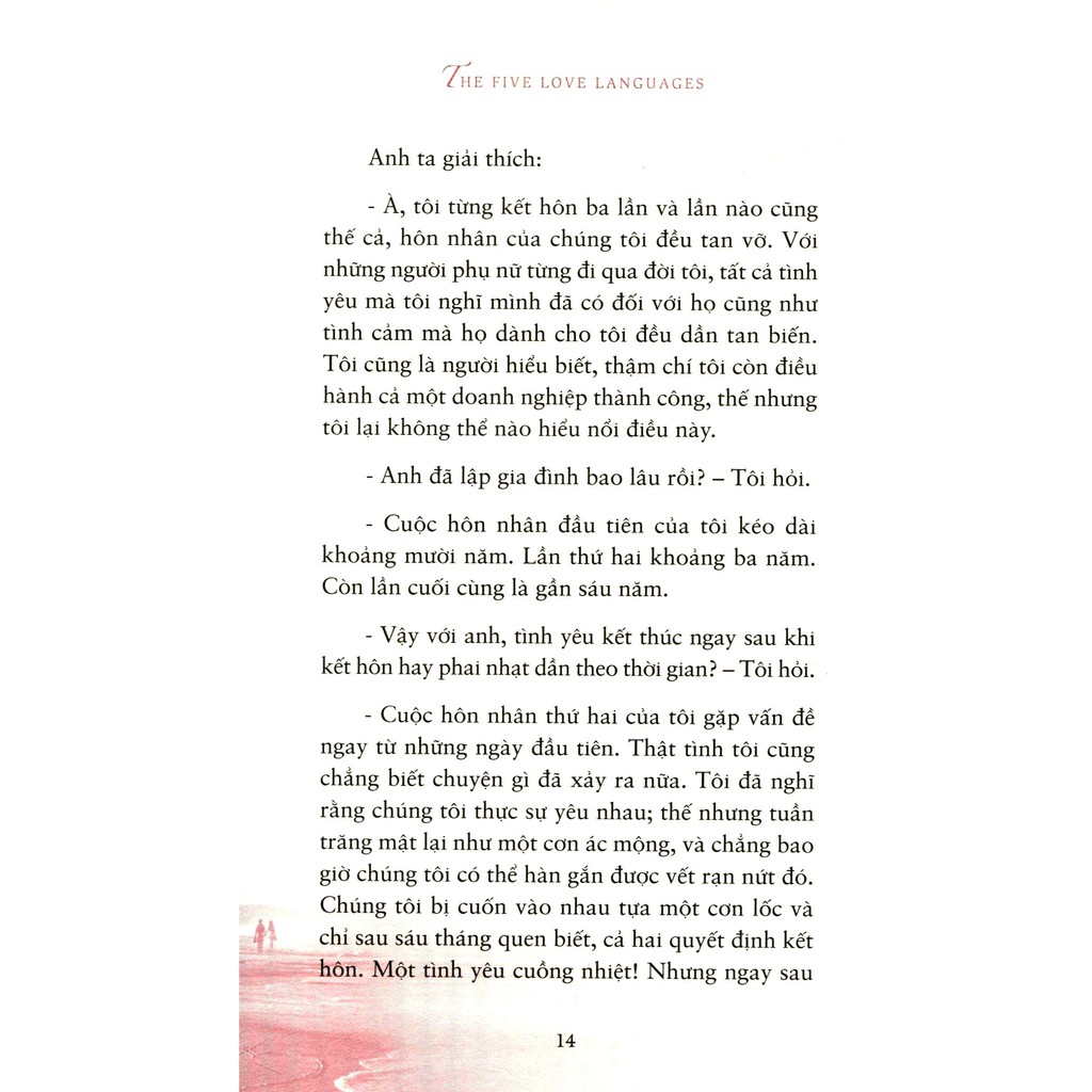 THÔNG TIN CHI TIẾT Công ty phát hành First News – Trí Việt Tác giả Gary Chapman NXB Tổng Hợp TPHcm Ngày xuất bản 09-2018 Kích thước 13 x 20.5 cm Dịch Giả Việt Hà – Minh Tươi Loại bìa Bìa mềm Số trang 240 GIỚI THIỆU SÁCH Năm ngôn ngữ tình yêu – tác phẩm nổi tiếng về tình yêu của giáo sư Gary Chapman sẽ khám phá trog mỗi con người đều có những ước muốn và cách thể hiện tình yêu khác nhau. Một khi hiểu được điều bí ẩn đó và biết sử dụng đúng ngôn ngữ của tình yêu, bạn sẽ có thể mở được và làm trái tim của người bạn yêu thương tràn ngập hạnh phúc và tình yêu của bạn ngày càng bền chặt và luôn mới mẻ, khi cả hai người đều cảm thấy được quan tâm, yêu thương và chia sẻ. Đó là bí quyết và là con đường ngắn nhất để bạn có được một tình yêu mà bạn hằng mong muồn và có được hạnh phúc thật sự. Cuốn sách luôn nằm trong danh sách những cuốn sách bán chạy nhất thế giới và đã được dịch ra hơn 40 ngôn ngữ….
