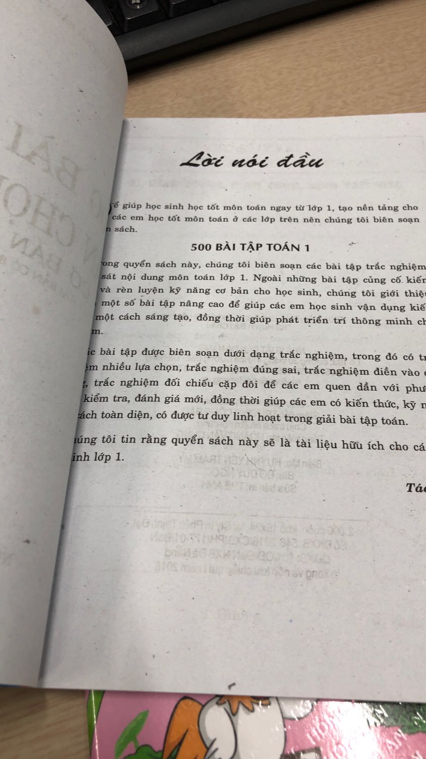 500 Bài Tập Toán Chọn Lọc Lớp 1 (Cơ Bản Và Nâng Cao) Quyển sách này gồm các bài tập trắc nghiệm được biên soạn theo sát nội dung môn toán lớp 1. Ngoài những bài tập củng cố kiến thức và rèn luyện kĩ năng cơ bản cho học sinh, nhóm tác giả cũng giới thiệu thêm một số bài tập nâng cao để giúp các em học sinh vận dụng kiến thức một cách sáng tạo, đồng thời giúp phát triển trí thông minh cho các em. Các bài tập được biên soạn dưới dạng trắc nghiệm, trong đó có trắc nghiệm nhiều lựa chọn, trắc nghiệm đúng sai, trắc nghiệm điền vào chỗ trống, trắc nghiệm đối chiếu cặp đôi để các em quen dần với phương pháp kiểm tra, đánh giá mới, đồng thời giúp các em có kiến thức, kỹ năng một cách toàn diện, có tư duy linh hoạt trong giải bài tập toán.