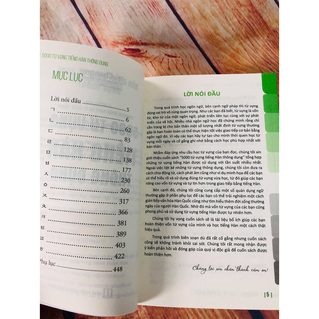 GIỚI THIỆU SÁCH 5000 Từ Vựng Tiếng Hàn Thông Dụng GIỚI THIỆU SÁCH: 5000 từ vựng thông dụng nhất được chọn lựa kỹ càng Giúp bạn hiểu đến 90% văn cảnh sử dụng tiếng Hàn Kèm ví dụ thực tế hỗ trợ hiệu quả cho người học giao tiếp thường nhật THÔNG TIN CHI TIẾT: Công ty phát hành MCBOOKS Tác giả The Changmi Ngày xuất bản 01-2018 Kích thước 10.5 x 15.5 cm Nhà xuất bản Nhà Xuất Bản Hồng Đức Loại bìa Bìa mềm Số trang 450 Ngày phát hành: 7/2018
