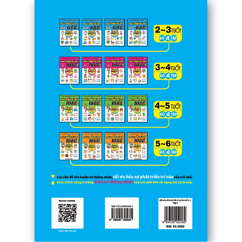Trên đây là toàn bộ thông tin về cuốn sách 688 CÂU ĐỐ PHÁT TRIỂN TRÍ TUỆ CHO BÉ 2-3 TUỔI – 3 SAO mà bạn đang quan tâm, hi vọng phần nào thỏa mãn nhu cầu của quý đọc giả.