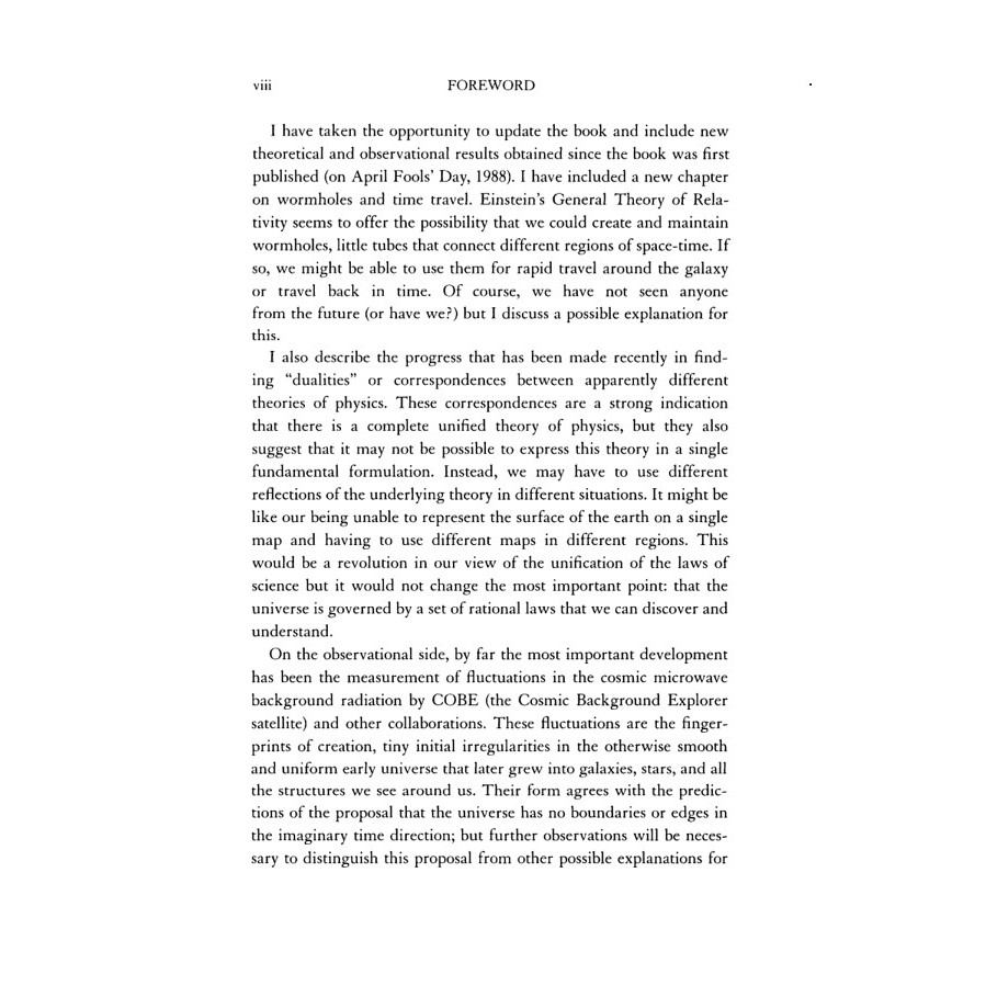 Tên Nhà Cung Cấp Công Ty Sách Báo Xunhasaba Tác giả Stephen Hawking Nhà xuất bản HarperCollins Publishers Năm xuất bản 2011 Kích thước 12.7 x 1.7 x 19.8 cm Hình thức Bìa Mềm Số trang 272 Was there a beginning of time? Could time run backwards? Is the universe infinite or does it have boundaries? These are just some of the questions considered in an internationally acclaimed masterpiece by one of the world’s greatest thinkers. It begins by reviewing the great theories of the cosmos from Newton to Einstein, before delving into the secrets which still lie at the heart of space and time, from the Big Bang to black holes, via spiral galaxies and strong theory. To this day “A Brief History of Time” remains a staple of the scientific canon, and its succinct and clear language continues to introduce millions to the universe and its wonders.