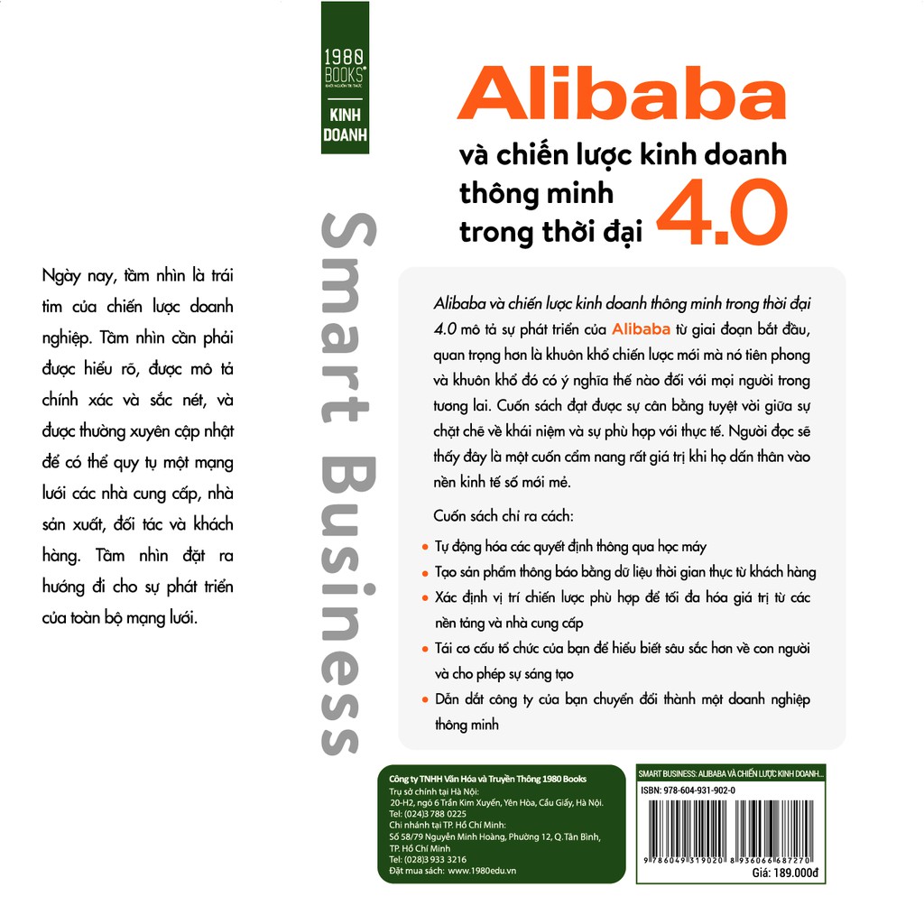 Công ty phát hành: 1980 Books Tác giả: Ming Zeng Nhà xuất bản: NXB Công Thương Năm xuất bản: 2019 Số trang: 456 Giới thiệu sách: Alibaba và chiến lược kinh doanh thông minh trong thời đại 4.0 mô tả sự phát triển của Alibaba từ giai đoạn bắt đầu, quan trọng hơn là khuôn khổ chiến lược mới mà nó tiên phong và khuôn khổ đó có ý nghĩa thế nào đối với mọi người trong tương lai. Cuốn sách đạt được sự cân bằng tuyệt vời giữa sự chặt chẽ về khái niệm và sự phù hợp với thực tế. Người đọc sẽ thấy đây là một cuôn cẩm nang rất giá trị khi họ dấn thân vào nền kinh tế số mới mẻ. Cuốn sách chỉ ra cách: Tự động hóa các quyết định thông qua học máy. Tạo sản phẩm thông báo bằng dữ liệu thời gian thực từ khách hàng. Xác định vị trí chiến lược phù hợp để tối đa hóa giá trị từ các nền tảng và nhà cung cấp. Tái cơ cấu tổ chức của bạn để hiểu biết sâu sắc hơn về con người và cho phép sự sáng tạo. Dẫn dắt công ty của bạn chuyển đổi thành doanh nghiệp thông minh……………….