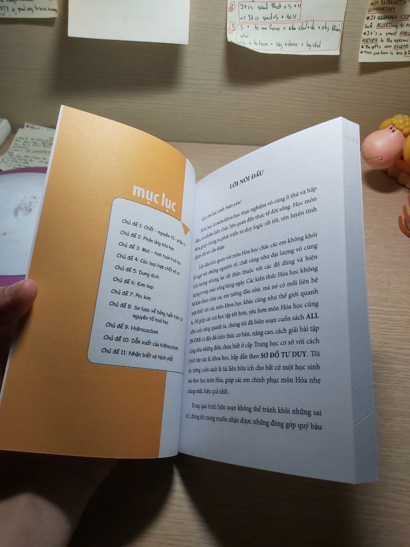 All in one Hóa học THCS Tại sao khá nhiều học sinh bậc trung học cơ sở (THCS) lại gặp khó khăn trong việc giải quyết một bài toán hóa học, mặc dù hiện nay có nhiều kênh thông tin để các em có thể tiếp cận và học tập bộ môn này? Vậy làm thế nào để các em có phương pháp làm bài toán hóa học bậc THCS từ bài đơn giản đến phức tạp? Để giải quyết những vấn đề nêu trên, các em cần phải: Nắm vững phần lý thuyết hóa học, sẽ không thể giải được bài toán hóa học nếu không biết các chất tiếp xúc với nhau có xảy ra phản ứng hay không, phản ứng nào xảy ra? Vì vậy cần phải nắm chắc tính chất hóa học của các loại hợp chất, các chất cụ thể…, để có thể dự đoán các phản ứng. Ví dụ: • BaO phản ứng với nước tạo Ba(OH)2 nhưng MgO không phản ứng với nước vì Ba(OH)2 tan còn MgO và Mg(OH)2 không tan. • Fe phản ứng với dung dịch HCl, H2SO4 loãng nhưng Cu không phản ứng vì Fe đứng trước H trong dãy hoạt dộng hóa học của kim loại còn Cu đứng sau H. • Metan và etilen đều tham gia phản ứng cháy nhưng chỉ có CJỈ4 làm mất màu dung dịch brom. Ngoài việc nắm chắc lý thuyết, còn phải biết sử dụng thành thạo các phương pháp giải cũng như thủ thuật tính toán đặc biệt. Để giúp các em nhanh chóng có thể tự giải được các bài toán hóa học từ đơn giản đến phức tạp, chúng tôi xin giới thiệu cuốn sách All in one Hóa học THCS All in one Hóa học THCS có gì đặc biệt? Kiến thức theo từng chủ đề All in one Hóa học THCS bao gồm 11 chủ đề quan trọng và chủ yếu trong Hóa THCS: – Chất, nguyên chất, phân tử – Phản ứng hóa học – Mol – tính toán hóa học – Các loại hợp chất vô cơ – Dung dịch – Kim loại – Phi kim – Sơ lược về bảng tuần hoàn các nguyên tố hóa học – Hidrocacbon – Dẫn xuất của hidrocacbon – Nhận biết và tách chất