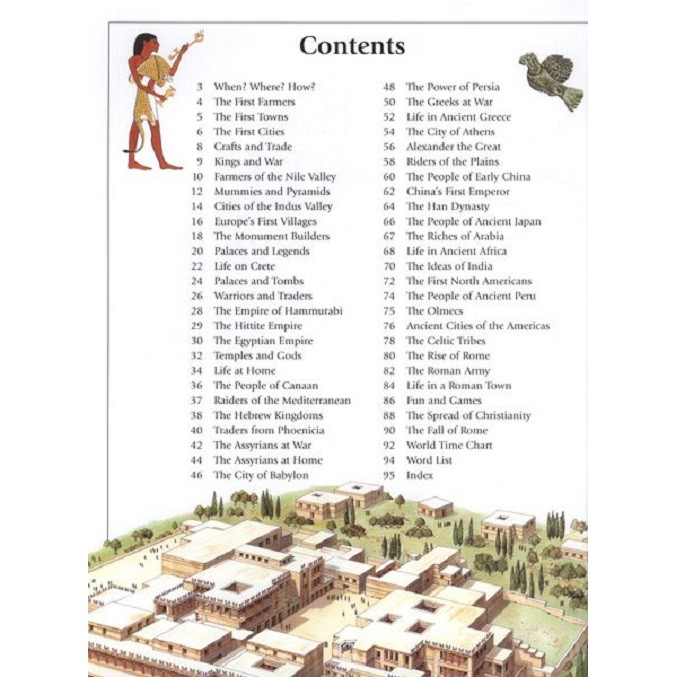 THÔNG TIN SÁCH Công ty phát hành: Usborne Nhà xuất bản: Usborne Ngày xuất bản: 04/2012 Tác giả: Nhiều tác giả Kích thước: 27.6 x 21.6 cm Số trang: 96 GIỚI THIỆU CHUNG Ancient World Cuốn sách giới thiệu tới độc giả về hơn 10.000 năm lịch sử trải dài từ những người nông dân đầu tiên cho đến sự sụp đổ của Đế chế La Mã; từ những đế chế khổng lồ đến những ngôi nhà bình thường, sự trỗi dậy và sụp đổ của các nền văn minh lớn trên toàn cầu. Tất cả được đưa vào cuộc sống với những hình ảnh minh họa hấp dẫn và thông tin đầy đủ. Ancient World A fascinating introduction to over 10,000 years of history, from the first farmers to the fall of the Roman Empire. From enormous empires to humble homes, the rise and fall of great civilizations across the globe is brought to life with lavish illustrations and essential information. Links to exciting website bring the history alive with video clips, games, sounds and interactivity. Also includes a chronology, word list and time chart. #bluehorizon #books #englishbook #booksforkid #sachtienganh #sachnhapkhau #sachthieunhi #booksforchildren