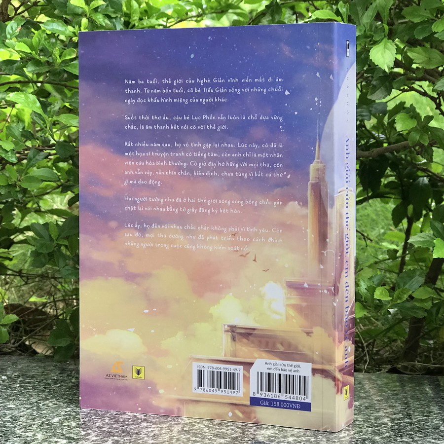 Anh Giải Cứu Thế Giới, Em Đến Bảo Vệ Anh (Kèm Bookmark) Năm ba tuổi, thế giới của Nghê Giản vĩnh viễn mất đi âm thanh. Từ năm bốn tuổi, cô bé Tiểu Giản sống với những chuỗi ngày đọc khẩu hình miệng của người khác. Suốt quãng thời gian thơ ấu, cậu bé Lục Phồn vẫn luôn là chỗ dựa vững chắc, là âm thanh kết nối cô với thế giới. Nhưng rồi bố mẹ Nghê Giản ly hôn, cô sang Mỹ sống cùng mẹ. Hai người mất liên lạc từ đó. Rất nhiều năm sau, họ vô tình gặp lại nhau. Lúc này, cô đã là một họa sĩ truyện tranh có tiếng tăm, còn anh chỉ là một nhân viên cứu hỏa bình thường. Cô giờ đây hờ hững với mọi thứ, còn anh vẫn vậy, vẫn chín chắn, kiên định, chưa vì bất cứ thứ gì mà dao động. Hai người tưởng như đã ở hai thế giới song song bỗng chốc gắn chặt lại với nhau bằng tờ giấy đăng ký kết hôn. Lúc ấy, họ đến với nhau chắc chắn không phải vì tình yêu. Còn sau đó, mọi thứ dường như đã phát triển theo cách chính những người trong cuộc cũng không kiểm soát nổi. “Em nhìn cho rõ, đúng là chúng ta không thuộc cùng một thế giới. Nhưng anh không có ý định từ bỏ em.” ~~~~~~ Công ty phát hành VanVietBooks Tác giả Quân Ước Loại bìa Bìa mềm Số trang 536 Ngày xuất bản 04-2020 Kích thước 14.5 x 20.5 cm Nhà xuất bản NXB Thanh Niên ======== #sách , #sáchvănhọc-tiểuthuyết, #lightnovel, #diệplạcvôtâm, #bts, #bạnđắtgiábaonhiêu, #sáchbts, #sáchđammỹ, #sáchhay, #nhàsáchonline, #vãntình