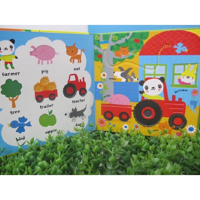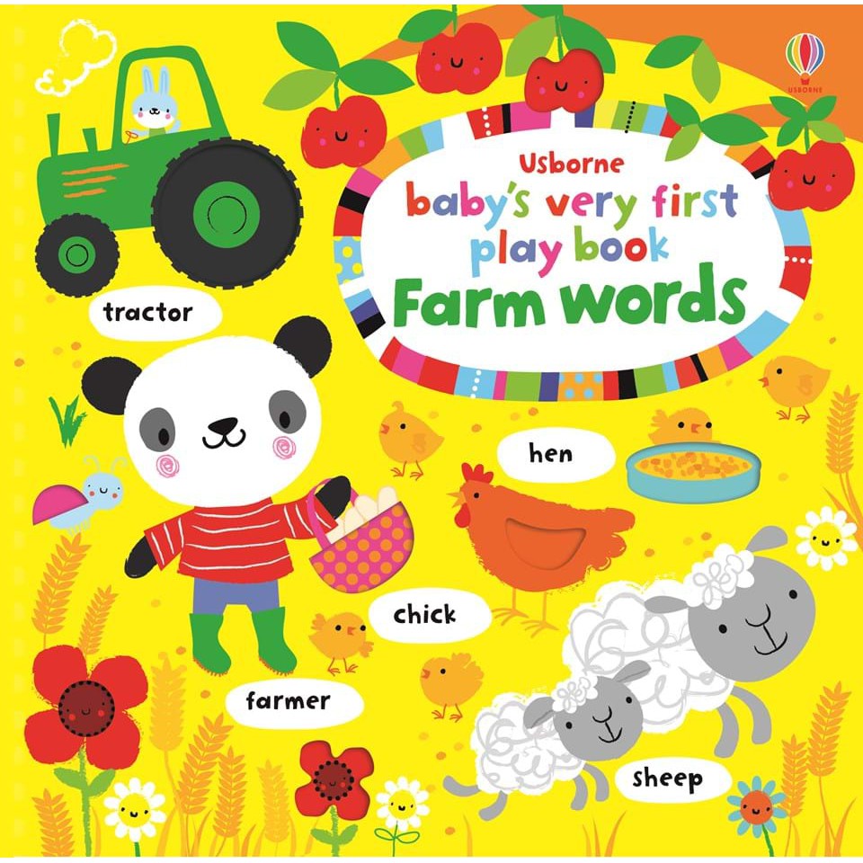 1 Giới thiệu Sách – Baby’s Very First Play Book Farm Words Đây là dòng sách đặc trưng của Usborne dành cho các bé từ 1+: – Thiết kế dạng Playbook nên đối với bé nhỏ dưới 1 tuổi, các bé có thể vân vê ngón tay theo các khe rãnh của trang sách để rèn vận động tinh – Dạng First words nên các bé hơn 1 tuổi cho đến 3 tuổi có thể học được rất nhiều từ vựng theo chủ điểm của sách – Hình ảnh minh họa đẹp, sắc nét, màu mực chuẩn và chất liệu giấy board book dày dặn nên các bé tha hồ sử dụng Đây là dòng sách cực kì đa dạng, phục vụ cho nhiều độ tuổi khác nhau, nên cha mẹ yên tâm là sách sẽ được sử dụng lâu thiệt lâu 2. Thông tin Sách – Baby’s Very First Play Book Farm Words ISBN: 9781409597070 Số trang: 10 Kích thước: 185 x 185mm Nhà xuất bản Usborne Năm xuất bản 2019 Độ tuổi 0+ Sách giấy cứng