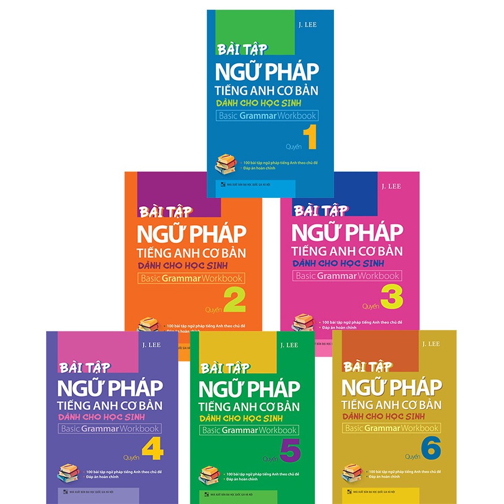 BÀI TẬP NGỮ PHÁP TIẾNG ANH CƠ BẢN DÀNH CHO HỌC SINH – TRỌN BỘ Cty phát hành Minh Long Tác giả : J.Lee NXB: ĐH QGHN Kích thước : 19 x 26 cm Năm xuất bản : 2017 Khối lượng : 1332 grams Bìa : mềm Để có thể viết và giao tiếp tiếng Anh thành thạo, học sinh cần phải có một nền tảng ngữ pháp vững chắc. Với rất nhiều bài tập thực hành đa dạng và phong phú, bộ sách Bài tập Ngữ pháp tiếng Anh cơ bản dành cho học sinh – Basic Grammar Workbook sẽ giúp các em từng bước nắm bắt được những kiến thức ngữ pháp quan trọng. – Các bài tập được nhóm theo các chủ đề ngữ pháp. – Đáp án ở cuối mỗi cuốn sách giúp giáo viên cùng với cha mẹ theo dõi và đánh giá sự tiến bộ của học sinh. Hi vọng bộ sách sẽ là công cụ tuyệt vời phục vụ cho việc học ngữ pháp tiếng Anh của các em học sinh, giúp các em rèn luyện và tiếp thu kiến thức một cách hiệu quả
