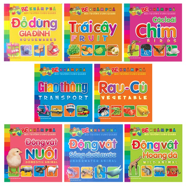 “Bộ sách Bé khám phá môi trường xung quanh bao gồm những hình ảnh minh họa sinh động đày mầu sắc, khuyến khích trẻ quan sát, tò mò, suy nghĩ, khám phá thế giới xung quanh; đồng thời giúp trẻ làm quen với tiếng Anh, phát triển tư duy khái niệm về đồ vật, động vật, các sự vật hiện tượng… phát triển ngôn ngữ, tình cảm xã hội… Sách dành cho bé trong lứa tuổi bắt đầu nhận thức thế giới xung quanh, thông qua các hình ảnh thế giới về các sự vật xung quanh và các trò chơi đơn giản, bổ ích, hấp dẫn giúp bé phát triển tư duy nhận thức, nâng cao trí tuệ toàn diện, khả năng tưởng tượng và sáng tạo. Đặc biệt bên cạnh mỗi hình ảnh minh họa là một khổ thơ tương ứng giúp các em tiếp cận và dễ nhớ hơn đối với những sự vật mình tiếp xúc trực quan sinh động. Bộ sách này gồm 8 cuốn với các chủ đề sau: – Đồ dùng trong gia đình – Các loài chim – Động vật sống dưới nước – Động vật hoang dã – Động vật nuôi – Giao thông – Rau củ – Trái cây Công ty phát hành: Minh Long Nhà xuất bản: Nhà Xuất Bản Mỹ Thuật Kích thước: 15 x 15 cm Tác giả: Nhiều Tác Giả Loại bìa: Bìa mềm Số trang: 14 trang mỗi cuốn Ngày xuất bản: 04-2013