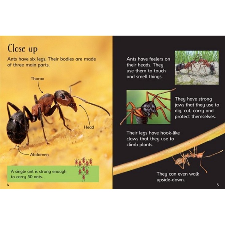 1. Giới thiệu Sách – Beginner Ants Hệ sinh thái các loài Kiến sẽ được thể hiện rõ qua cuốn sách này nhé. Từ tập quán sinh hoạt, các thức tổ chức bầy đàn, đến các giống loài kiến khác nhau Các bé cũng hiểu được tầm vai trò của Kiến trong hệ sinh thái nữa nhé 2. Thông tin Sách – Beginner Ants Độ tuổi 4 Bìa cứng ISBN: 9781409581604 Số trang 32 Kích thước: 204 x 150mm Tác giả Lucy Bowman Nhà xuất bản Usborne Năm xuất bản 2018