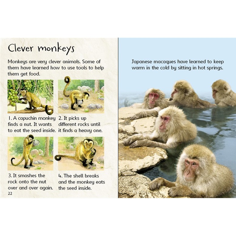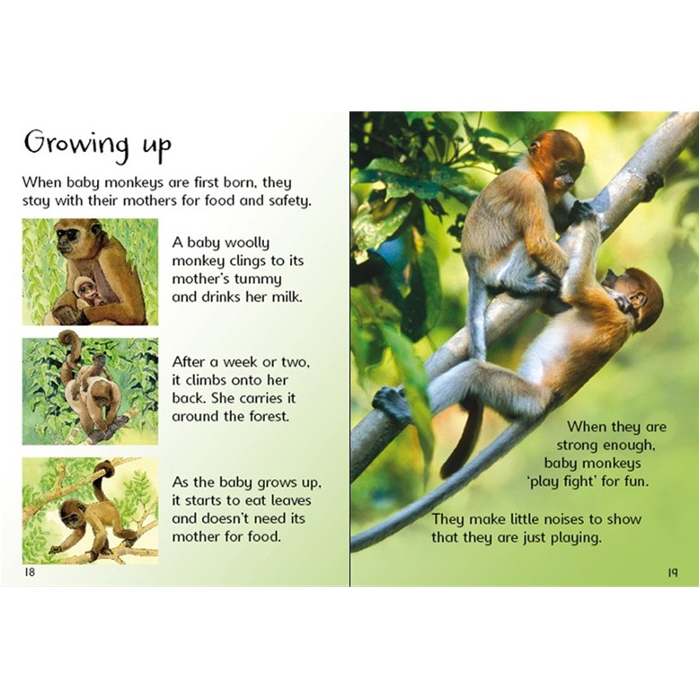 1. Nội dung Sách – Beginners Monkey Thế giới loài Khỉ (Linh trưởng, tinh tinh vượn,…) sẽ hiện ra thật sinh động trong cuốn sách này: – Có bao nhiêu giống khỉ khác nhau – Các loài Khỉ sinh sống ở đâu? – Khỉ có biết bơi không? Khỉ thích ăn thức ăn gì? Sách được thiết kế theo theo dạng khái lược nên thông tin đơn giản, dễ hiểu, dành cho các bạn nhỏ nhập môn khoa học, nghiên cứu lịch sử, văn hóa cổ đại Sách được xuất bản bởi Usborne, được tư vấn bởi các nhà khoa học danh tiếng Nhiều đường dẫn Internet link được đưa vào sách, giúp các bé khai thác thêm thông tin, mở rộng vấn đề theo sở thích 2. Thông tin Sách – Beginners Monkey Độ tuổi: 5+ Sách bìa cứng ISBN: 9781409523079 Số trang 32 Nhà xuất bản Usborne Năm xuất bản 2018 Kích thước: 204 x 150mm