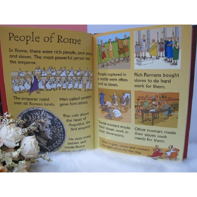 1. Giớ thiệu Sách – Beginners Romans BEGINNERS ROMANS nằm trong dòng sách Beginners, cung cấp cho các bạn nhỏ từ 5 tuổi các kiến thức đa dạng về Văn Hóa, Lịch Sử, Khoa Học, Tự Nhiên… Trong cuốn BEGINNERS ROMANS, các bé sẽ biết nhiều thông tin quý giá về người La Mã cổ đại: – Họ là ai? – Họ sinh sống ở vùng lãnh thổ rộng lớn như thế nào? – Nền Văn minh La Mã đóng vai trò quan trọng như thế nào đối với Lịch Sử và Văn hóa nhân loại? Những kiến thức trong sách được trình bày đơn giản, dễ hiểu, kèm theo hình minh họa đẹp mắt, chắc chắn sẽ khiến các bé thích thú 2. Thông tin Sách – Beginners Romans: Độ tuổi 4+ Sách bìa cứng ISBN: 9781474903172 Số trang 32 Kích thước: 204 x 150mm Tác giả Adam Larkum Nhà xuất bản Usborne Năm xuất bản 2018