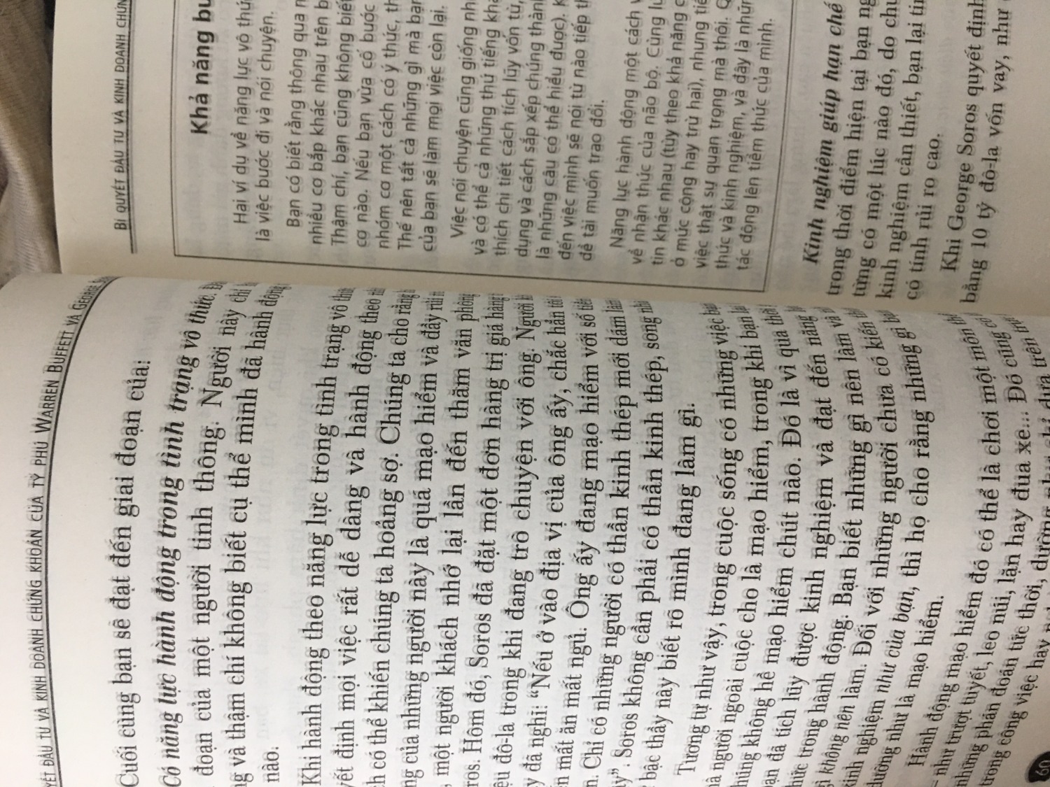 Bí Quyết Đầu Tư Và Kinh Doanh Chứng Khoán Của Tỷ Phú Warren Buffett Và George Soros Warren Buffett Và George Soros đều khởi nghiệp từ hai bàn tay trắng, và họ cùng làm nên những gia tài trị giá hàng chục tỷ đô la chỉ bằng một hoạt động đầu tư. Tuy nhiên, sự nghiệp của hai người lại trái ngược và mâu thuẫn với nhau như mặt trăng mặt trời. Buffett dùng tiền mặt để mua những cổ phiếu và cả các doanh nghiệp được định giá thấp hơn đáng kể so với giá trị thực của chúng, rồi sở hữu chúng vĩnh viễn, còn Soros nổi tiếng nhờ những vụ mua bán khổng lồ và chớp nhoáng tại các thị trường tiền tệ. Những thói quen và chiến lược tinh thần mà cả Warren Buffett Và George Soros được hành dường như đang thách thức “những bộ óc thông minh” của Wall Street. – Cả Warren Buffett Và George Soros đều phản đối việc đa dạng hoá danh mục đầu tư. – Cả hai đều sẽ nói với bạn rằng việc dự đoán động thái tiếp theo của thị trường hay của nền kinh tế không đem lại thành công cho các vụ đầu tư. – Cả hai cũng không tập trung vào lợi nhuận mà họ sẽ thu được từ các vụ đầu tư, mà trên thực tế, động lực cao nhất của họ hoàn toàn không phải là tiền bạc. – Họ không tin rằng để có lợi nhuận lớn thì nhất thiết phải chấp nhận rủi ro lớn. Vì thế, họ dành sự quan tâm lớn hơn cho việc bảo tồn vốn. – Và họ không đọc tất cả những bài nghiên cứu, báo cáo… mà Wall Street công bố! Thành công tiềm ẩn trong những thói quen và chiến lược tinh thần của bạn – tác giả Mart Tier đã khẳng định như vậy trong cuốn sách có tính chất mở đường này. Thông qua việc xác định những thói quen đưa Warren Buffett và George Soros đến với sự thành công phi thường, Mart Tier lần đầu đã chứng minh rằng tất cả các nhà đầu tư thành công đều có những thói quen đó. Và bạn có thể học hỏi và rèn luyện những thói quen này thông qua cuốn sách kinh doanh này.