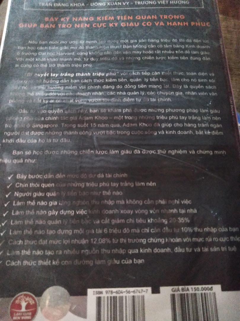 Chắc hẳn, – Bạn là người có một khao khát mạnh mẽ muốn tự mình tạo dựng một gia sản hàng triệu đô mà chưa biết bắt đầu từ đâu? – Bạn nhận ra rằng với cách bạn đã làm việc quần quật 5 năm, 10 năm, 20 năm, thậm chí 30 năm vừa qua chưa phải là phương pháp đúng đắn giúp bạn trở nên giàu có? – Bạn mơ ước có thể thoát khỏi sự chật vật về tài chính đeo bám bạn suốt cuộc sống vừa qua? – Bạn tự hỏi, lý do gì mà nhiều người đã trở nên giàu có và cực kỳ giàu có, còn bạn thì chưa? Bạn sẽ tìm thấy tất cả các câu trả lời cho những điều thắc mắc đó trong quyển sách “Bí Quyết Tay Trắng Thành Triệu Phú – Làm thế nào để có thu nhập dồi dào và gia tài bạc tỷ từ số 0”. Quyển sách chứa đựng những bí quyết đã giúp tác giả Adam Khoo trở thành một trong những triệu phú trẻ tuổi nhất ở Singapore khi anh mới ở tuổi 26, điều đặc biệt là anh khởi nghiệp hoàn toàn từ bàn tay trắng, không hề được thừa kế tài sản và chưa bao giờ vay ngân hàng hay nhận tiền đầu tư từ bên ngoài. Adam Khoo đã gói ghém những kinh nghiệm thực tế đã giúp anh có được tài sản triệu đô như hiện tại vào quyển sách này và thông qua việc đọc sách sẽ giúp bạn biết được những phương pháp làm giàu phong phú đã giúp cho Adam Khoo cũng như hàng trăm ngàn người đạt được những thành công vượt bậc trong cuộc sống và kinh doanh, bất kể điểm khởi đầu của họ là từ đâu. Đầu tư vào quyển sách này, bạn sẽ hiểu rõ: