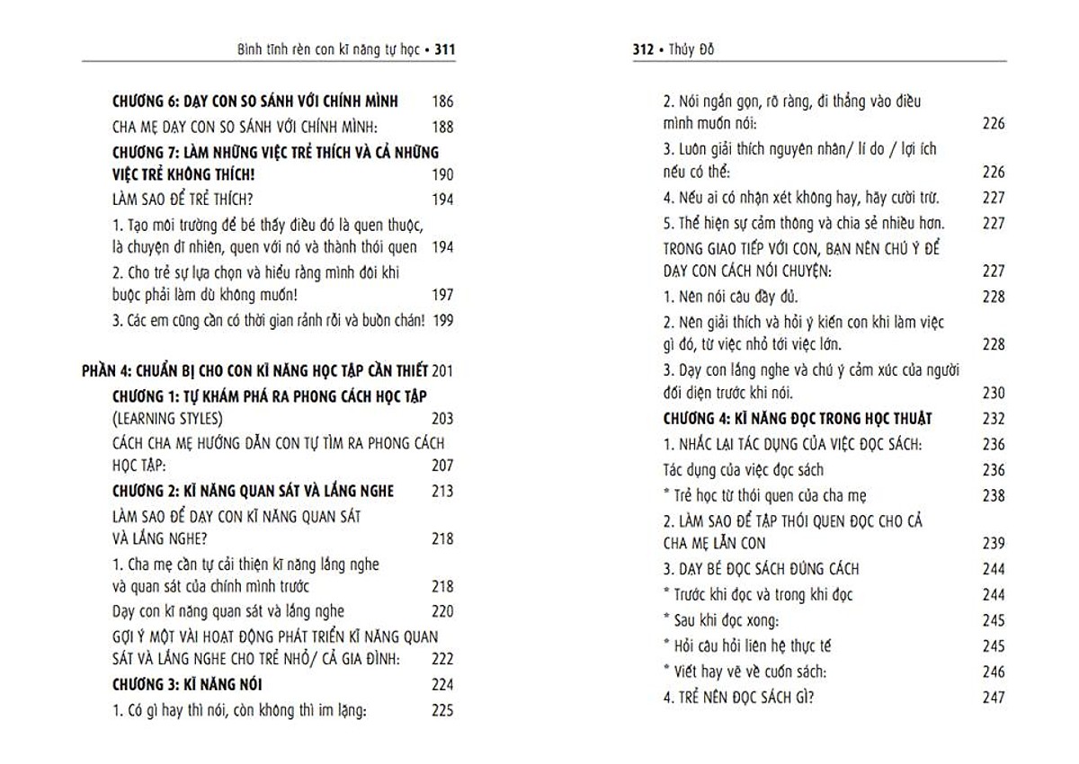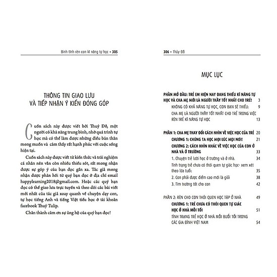 Chào các bạn! Xin phép cho mình được xưng mình và gọi các bạn là bạn, bởi vì chúng ta là những người bạn trên cùng một hành trình, hành trình giúp con trẻ – thế hệ tương lai – có tinh thần học tập cao, có kĩ năng cần thiết để tự tìm tòi và khám phá kiến thức, có kĩ năng làm việc, để đóng góp và quan trọng là biết cách để sống một cuộc đời hạnh phúc và có ích. Khi các bạn cầm trên tay cuốn sách này, có thể các bạn là một trong nhiều người cha, người mẹ đang loay hoay tìm cách giúp con mình tự giác học và học tốt ở trường. Mình tin rằng trong số các bậc cha mẹ hiện nay, có rất nhiều cha mẹ thuộc 7x, 8x và 9x, và có rất nhiều người nếm trải cuộc sống cơ cực khi còn nhỏ như mình. Khi xưa hoàn cảnh còn khó khăn, cha mẹ còn bận lo làm ăn kiếm cơm thì việc con tự giác học là điều hiển nhiên, dù cha mẹ không nhắc nhở nhiều nhưng con cái tự hiểu rằng, muốn thoát khỏi lao động vất vả, sống sung sướng và nhàn hạ hơn thì chỉ có một con đường là phải học để có một nghề nghiệp tốt hơn sau này. Về sau, tivi và gần đây là điện thoại, trò chơi điện tử và ipad đã chiếm một vị trí quan trọng trong đời sống. Trẻ có nhiều thú vui hơn là việc học, khiến cho việc học không phải là ưu tiên hàng đầu trong trí não của trẻ, mặc kệ cho cha mẹ nhắc nhở thế nào. Mình đã nhìn thấy sự thay đổi to lớn đấy ở em gái mình. Em gái mình thuộc thế hệ 2000x, được cha mẹ nuông chiều hơn khi kinh tế khá giả hơn, có nhiều thời gian giải trí hơn, dành rất nhiều thời gian trên mạng xã hội hơn là học hay phụ cha mẹ làm việc nhà. Trong khi xã hội ngày càng thay đổi nhanh chóng, đòi hỏi con em của chúng ta phải có nhiều kĩ năng mới có thể thích ứng trong cuộc sống tương lai, nhà trường chưa có sự biến chuyển nhiều so với những năm 199x, khi việc học vẫn xoay quanh việc học thuộc bài, trả lời câu hỏi là chủ yếu. Giáo viên chủ yếu giao việc, giao bài cho học sinh nhưng ít dạy học sinh kĩ năng tự học. Trẻ thực sự không có không gian để phát triển kĩ năng tự học, mà thiếu kĩ năng này, trẻ không thể nào tự phát triển bản thân tốt trong tương lai, khi các em ra đời và đi làm, chứ không chỉ ngồi khi ngồi trên ghế nhà trường. Các em không thể phát triển tính tự giác của mình nếu các em ngồi trong lớp học thêm sau giờ học từ lớp 1 đến lớp 12. Chỉ ngồi nghe thầy cô giáo giảng rồi làm bài, lúc nào cũng có người ngồi bên để nhắc thì khó có thể giúp trẻ tự giác, có suy nghĩ độc lập hay thậm chí một khoảng không gian để trẻ mơ mộng những suy nghĩ của riêng mình. Có lẽ đến lúc chúng ta, là những người có ảnh hưởng lớn đến trẻ, cần nhìn khác và nghĩ khác về việc học, tìm ra những biện pháp để đồng hành với trẻ, giúp trẻ rèn luyện được thái độ tự giác trong học tập và các kĩ năng học tập cần thiết. Và quyển sách này sẽ hướng dẫn bạn và con bạn tạo lập được thái độ tự giác trong việc học, trong công việc hay đơn giản là chăm sóc bản thân mình. Cảm ơn mọi người đã ủng hộ ! Tác giả: Thủy Đỗ