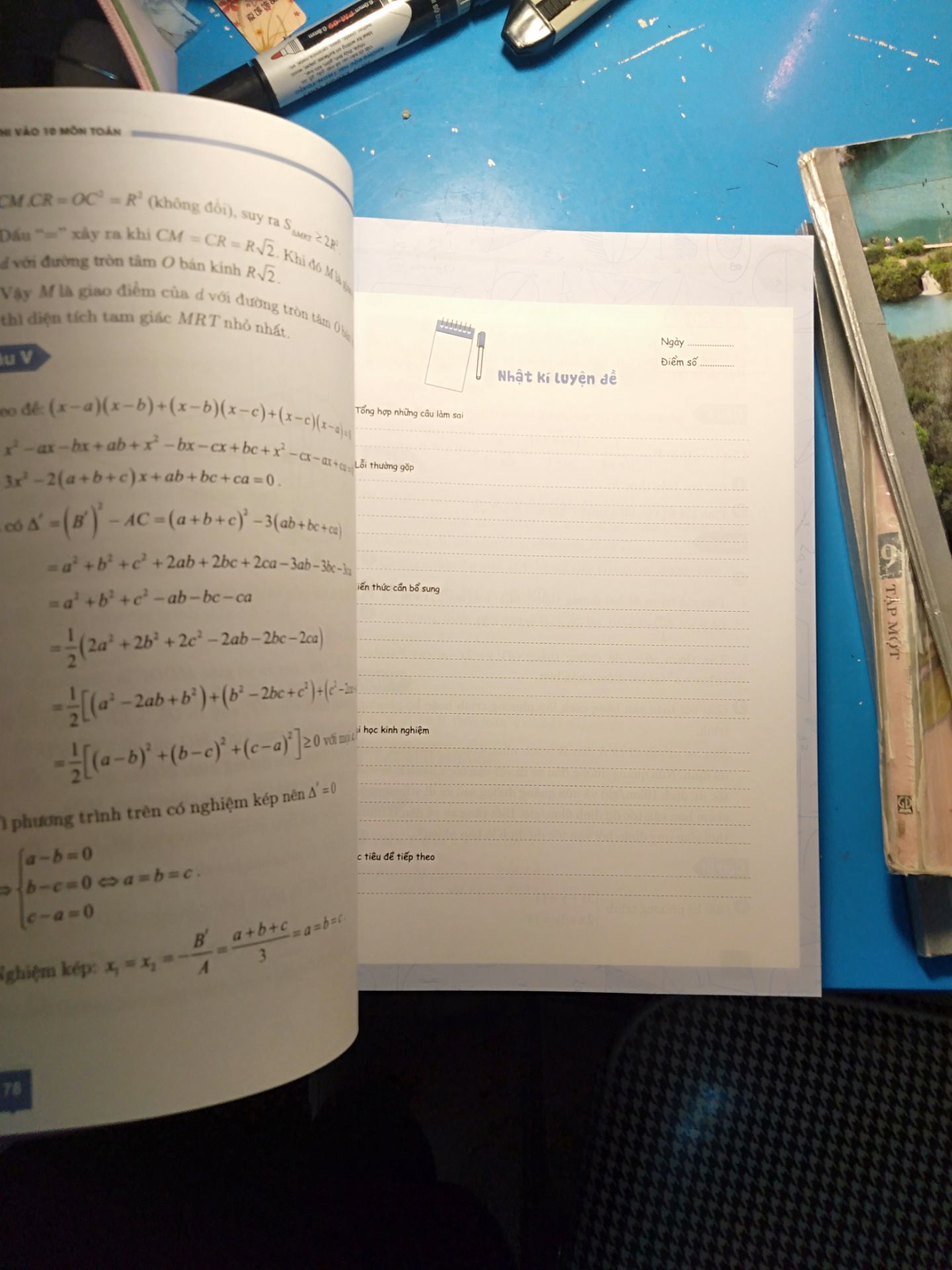 Luyện giải đề thi vào lớp 10 môn Toán, phương pháp ôn tập hiệu quả tức thì trong giai đoạn nước rút Kỳ thi chuyển cấp từ lớp 9 lên lớp 10 là một kỳ thi quan trọng đối với các em học sinh. Toán học là môn thi bắt buộc đối với tất cả các em. Thế nhưng, trong giai đoạn nước rút này, hàng triệu thí sinh trên cả nước đang gặp phải rất nhiều vấn đề: Học sinh không có phương pháp làm bài thi Thời gian không còn nhiều nhưng nhiều em học sinh vẫn đang trong tình trạng “nước đến chân mới nhảy”. Kỳ thi vào lớp 10 môn toán với hình thức tự luận, nếu không có phương pháp làm bài thi hiệu quả thì các em khó có thể hoàn thành kịp thời gian. Thế nhưng đa số học sinh hiện nay đều chưa có phương pháp làm bài cụ thể. Đề thi chuyển cấp có nhiều dạng bài tập nhưng các em đang không biết ôn tập theo hệ thống Nhận biết được các dạng bài tập chính là bước đầu giúp các em vạch ra lộ trình ôn thi khoa học. Kiến thức môn toán thi vào lớp 10 khá đồ sộ, thời gian lại không còn nhiều nếu vẫn ôn tập tràn lan mà không phân chia theo dạng bài thì học sinh rất khó để đạt điểm cao. Học sinh lớp 9 không tìm được các bộ đề để ôn luyện Ôn thi thông qua việc giải đề vừa giúp các em tổng hợp lại kiến thức vừa giúp các em nâng cao kỹ năng làm bài. Những bộ đề bám sát xu hướng ra đề và chương trình đổi mới của sách giáo khoa chính là điều mà các em đang mỏi mòn tìm kiếm. Kỳ thi đang tới gần, nếu các em không giải quyết những vấn đề này nhanh chóng thì rất khó có thể vào được trường THPT mà các em vẫn hằng mơ ước. Với mong muốn có thể giúp đỡ cho các em học sinh lớp 9 có thể ôn tập dễ dàng, chúng tôi xin giới thiệu tới các em cuốn sách: “Luyện giải đề thi vào 10 môn Toán”. Cuốn sách được ra đời nhờ sự kết hợp giữa ban biên tập TKBooks – chuyên sách tham khảo và thầy Nguyễn Xuân Nam, tác giả của cuốn sách bán chạy năm 2018 “Bứt phá điểm thi THPT Quốc gia môn Toán” dành cho học sinh THPT. Cuốn sách “Bứt phá điểm thi vào lớp 10 môn Toán” có gì đặc biệt? Hướng dẫn phương pháp làm bài thi hiệu quả Môn Toán vào lớp 10 với đặc trưng là môn thi tự luận, tức là thi viết nên đòi hỏi các em học sinh phải nắm chắc kiến thức và thực hiện với một phương pháp tư duy giải đề rõ ràng thì mới đạt hiệu quả tối đa. Ngay từ những trang đầu, cuốn sách này sẽ bật mí cho các em những phương pháp tư duy giải đề nhanh và chính xác. Các phương pháp tương ứng với từng giai đoạn làm bài bắt đầu từ trước lúc nhận đề thi, khi nhận đề cho đến trình bày bài giải trên giấy thi. Bên cạnh đó còn là những lưu ý cần có khi phân tích câu hỏi đề bài, phân tích yêu cầu của đề và cách “tư duy ngược” để giải quyết bài toán chứng minh hình học. Phân chia bài tập thành các dạng bài tập kèm các bài tập tương tự Đề thi vào lớp 10 môn toán với nhiều dạng bài tập. Để các em dễ dàng ôn tập, mỗi đề thi trong cuốn sách được chia thành 5 câu hỏi tương ứng với 5 dạng điển hình về: Rút gọn biểu thức, thực hiện phép tính Hàm số và đồ Giải phương trình, hệ phương trình Hình học Các bài toán nâng cao về cực trị, chứng minh bất đẳng thức Ngoài các bài tập trong đề, học sinh còn có cơ hội rèn luyện kỹ năng giải toán thông qua hệ thống các bài tập tương tự. Hệ thống 30 đề thi cùng lời giải chi tiết Trong giai đoạn nước rút luyện đề chính là phương pháp ôn luyện đỉnh cao. Cuốn sách tổng hợp 30 đề thi được biên soạn bám sát với chương trình và sách giáo khoa. Sau mỗi đề sẽ có luôn lời giải chi tiết để học sinh có thể dễ dàng đánh giá dược trình độ của bản thân. Đây là một cuốn sách vừa cung cấp cho các em phương pháp làm bài khoa học, vừa cung cấp hệ thống bộ đề luyện thi bám sát chương trình. Cuộc chiến để vào ngôi trường THPT mơ ước chỉ dành cho số ít những người biết nỗ lực, cố gắng. Các em hãy hành động ngay hôm nay cùng cuốn sách này để đạt được mục tiêu của bản thân.
