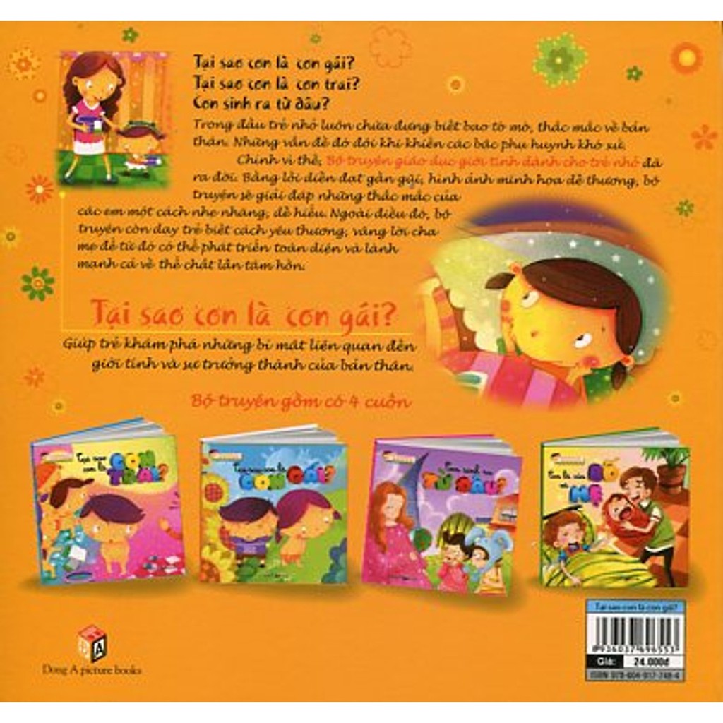Cuốn sách BỘ GIÁO DỤC GIỚI TÍNH CHO TRẺ NHỎ – TẠI SAO CON LÀ CON GÁI? ebook epub prc của tác giả: Nhiều tác giả, nhà xuất bản: NXB Dân Trí, do công ty Công Ty Cổ Phần Văn Hóa Đông A phát hành có giá ưu đãi nhất ₫15.600, đã được bán ra với hơn 113 lượt, đi kèm 61 lượt đánh giá, nhận xét về đầu sách. Dưới đây là phần review chi tiết ebook: