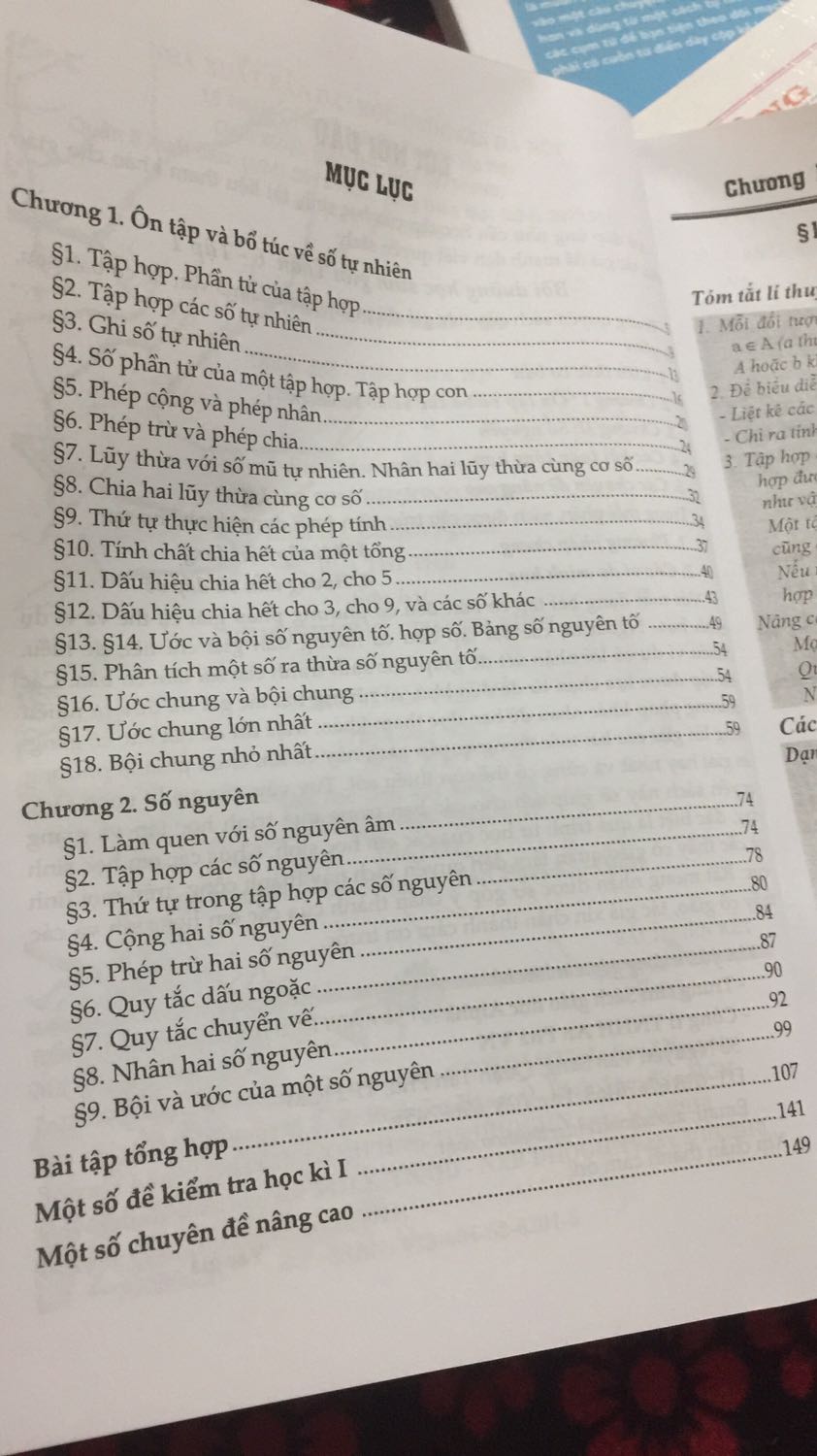 Bồi Dưỡng Học Sinh Giỏi Toán 6 (Tập 1) Chương I: Ôn tập và bổ túc về số tự nhiên 1. Tập hợp. Phần tử của tập hợp 2. Tập hợp các số tự nhiên 17. Ứớc chung lớn nhất 18. Bội chung nhỏ nhất Chương II: Số nguyên 1. Làm quen với số nguyên âm 2. Tập hợp các số nguyên 8. Nhân hai số nguyên 9. Bội và ước của một số nguyên Bài tập tổng hợp Một số đề kiểm tra học kì I Một số chuyên đề nâng cao