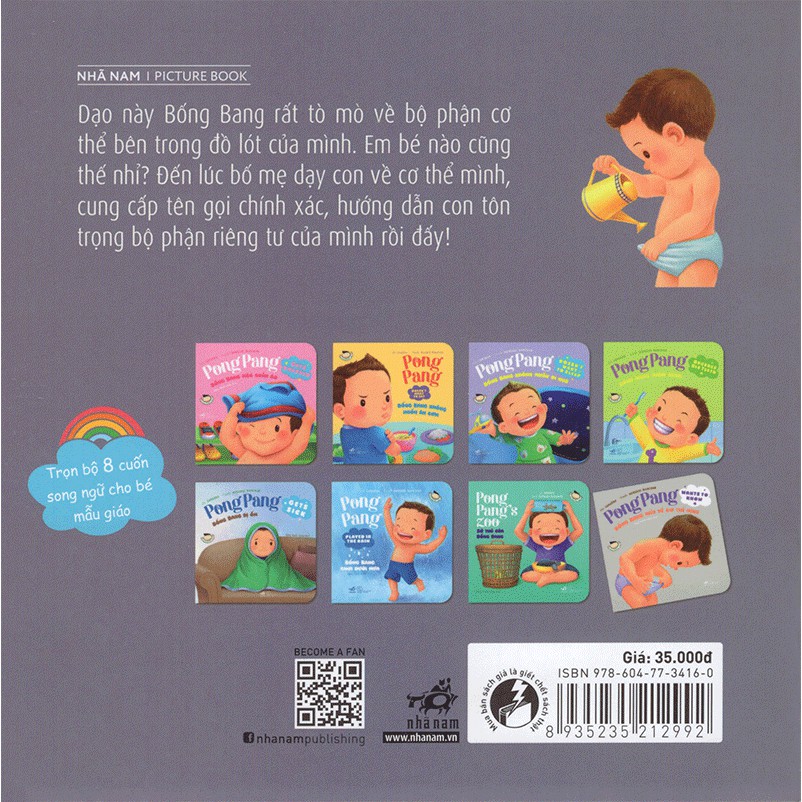Công ty phát hành Nhã Nam Tác giả: Songkha, Mongkol Wancham Ngày xuất bản: 08-2017 Kích thước: 17 x 17 cm Nhà xuất bản: Nhà Xuất Bản Thế Giới Dịch Giả: Đặng Thanh Giang Loại bìa: Bìa mềm Số trang: 24 GIỚI THIỆU SÁCH Picture Book – Pong Pang: Bống Bang Hiểu Về Cơ Thể Mình Dạo này Bống Bang rất tò mò về bộ phận cơ thể bên trong đồ lót của mình. Em bé nào cũng thế nhỉ? Đến lúc bố mẹ dạy con về cơ thể mình, cung cấp tên gọi chính xác, hướng dẫn con tôn trọng bộ phận riêng tư của mình rồi đấy!