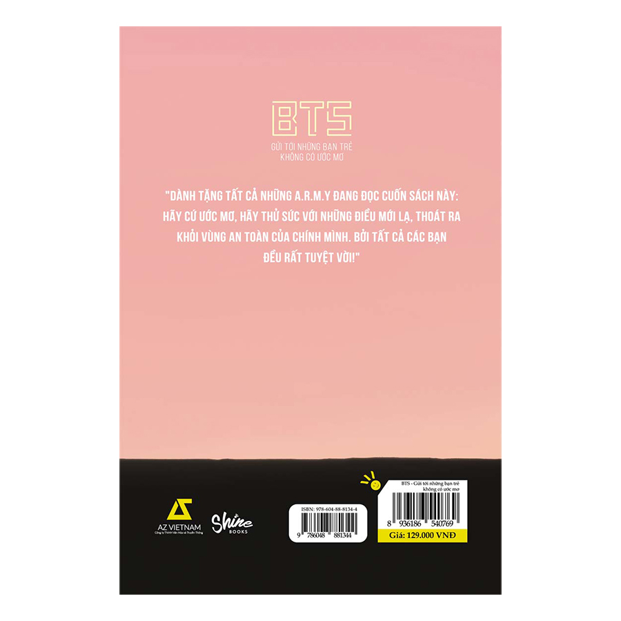 Giới trẻ ngày nay gắn bó rất mật thiết với thế giới giải trí. Trong đó, K-pop đang trên đà phát triển không ngừng và nhận được rất nhiều sự quan tâm từ cộng đồng quốc tế. Những thần tượng K-pop có ảnh hưởng đáng kể đến lối sống và suy nghĩ của một vài tầng lớp, đặc biệt là các bạn trẻ. Năm 2013, công ty Big Hit Entertainment cho ra mắt bảy chàng trai tài năng, những người về sau đã trở thành nguồn cảm hứng cho một bộ phận lớn giới trẻ ngày nay. BTS – Nhóm nhạc có nhiều điểm đặc biệt như: sở hữu một nhóm trưởng lôi cuốn, các thành viên có tính cách độc đáo và từng cá nhân đều đóng góp vào sản phẩm chung, quan trọng nhất chính là sự yêu mến nhiệt thành của người hâm mộ, bởi họ có khả năng làm thay đổi cuộc sống của những người hâm mộ theo cách tinh tế nhất thông qua những lời ca chạm đến trái tim, thái độ sống lạc quan, hay chính mục tiêu sự nghiệp của cả bảy chàng trai – trở thành những người đại diện cho thế hệ trẻ. Tất cả các tác phẩm của BTS đều là những câu chuyện kể về hành trình của những đứa trẻ trở thành người lớn qua nhiều giai đoạn của cuộc đời. RM từng nói anh cảm thấy buồn vì các bạn trẻ thường chùn bước ngay khi mới gặp khó khăn. RM hy vọng thế hệ trẻ chúng ta, những bạn trẻ tuổi đôi mươi, bao gồm cả anh, có thể tận hưởng cuộc sống. Anh cũng mong có thể giúp các bạn trẻ lạc quan đối diện với những vấn đề trong cuộc sống. Và dù thế thế nào, chúng ta cũng phải biết yêu quý chính bản thân mình. Dành tặng tất cả những A.R.M.Y đang đọc cuốn sách này: Hãy cứ ước mơ, hãy thử sức với những điều mới lạ, thoát ra khỏi vùng an toàn của chính mình! Bởi tất cả các bạn đều rất tuyệt vời và thông minh. Đồng thời, xin được dành tặng cuốn sách này tới tất cả những bạn trẻ không có ước mơ.