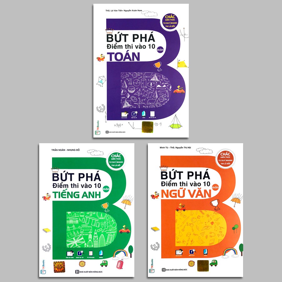 Combo 3 cuốn: Bứt Phá Điểm Thi Vào Lớp 10 (Môn Toán, Văn, Anh) Combo gồm 3 cuốn sách: 1. Bứt Phá Điểm Thi Vào Lớp 10 – Môn Toán Khi tự ôn thi vào lớp 10 môn Toán, học sinh thường có xu hướng ôn những thứ mình nghĩ sẽ thi vào. Điều đó rất nguy hiểm, vì như thế học sinh dễ dàng bỏ qua những kiến thức quan trọng. Đến khi làm bài thi thì không có khái niệm gì về nội dung đó cả. Chuyện học tủ, học lệch là điều phổ biến ở học sinh. Những nội dung bị bỏ qua thường là do ít thú vị hoặc quá nặng nề. Do tự ôn thi, học sinh lại càng không được dẫn dắt và kích thích sự thích thú. Dẫn đến việc nhiều kiến thức quan trọng bị bỏ trống, gây khó khăn cho việc làm bài. Và để giúp các em có một định hướng đúng đắn, rõ ràng trong quá trình ôn thi môn Toán lớp 10, cuốn sách Bứt phá điểm thi vào 10 môn Toán sẽ là cẩm nang giúp các em trang bị những kiến thức cần thiết để các em tự tin hơn trong kỳ thi sắp tới. Nội dung cuốn sách gồm phần Đại số, phần Hình học cùng 8 chuyên đề, các chuyên đề được tuyển chọn kỹ càng, có nội dung bám sát chương trình thi. Đối với mỗi chuyên đề, kiến thức được đưa ra một cách đầy đủ, có hệ thống. Hướng dẫn giải chi tiết, từ những bài dễ đến khó, giúp các em học sinh từ trung bình trở lên hoàn toàn có thể tự học. Công ty phát hành TKBooks Tác giả Nguyễn Xuân Nam, ThS. Lê Văn Tiến Ngày xuất bản 01-2019 Kích thước 17 x 24 cm Nhà xuất bản Nhà Xuất Bản Hồng Đức Loại bìa Bìa mềm Số trang 336 2. Bứt Phá Điểm Thi Vào Lớp 10 – Môn Ngữ Văn Học Ngữ văn chưa bao giờ là dễ dàng! Bởi vì hàng loạt khó khăn sau đây, những nỗi băn khoăn, lo lắng mà hàng triệu học sinh trên cả nước đều có chung cảm nhận. Kiến thức quá nhiều, không biết ôn tập từ đâu. Ôn thế nào bây giờ để trọng tâm, bám sát và nhớ lâu. Đề thi sẽ có những câu hỏi, dạng bài nào? Cách trình bày và bí quyết đạt điểm cao? Phân bố thời gian thế nào cho hợp lý với mỗi câu? Tất cả các câu hỏi này đều được giải đáp qua quyển sách đặc biệt dưới đây, được tác giả Minh Tú và T Nguyễn Thị Hải dồn rất nhiều tâm huyết để viết ra và biên tập. Đó chính là sách Bộ đề Bứt phá điểm thi vào 10 môn Ngữ Văn. Theo những gì mà các tác giả nghiên cứu và thử nghiệm qua nhiều năm, thì biện pháp ôn luyện đỉnh cao trong giai đoạn nước rút chính là Luyện Đề! Việc Luyện Giải Đề (nhất là các đề thi chính thức vào 10 của các Sở GD&ĐT) mang lại rất nhiều điều lợi ích: Hiểu rõ cấu trúc đề và xu hướng ra đề thi. Khoanh vùng trọng tâm kiến thức. Trau dồi kĩ năng làm bài và cách trình bày sạch đẹp. Làm quen với tâm lý và phản xạ thi cử Tìm ra được những thiếu sót và học hỏi được kinh nghiệm cho bản thân. Hiểu rõ sức mình để chọn trường vừa sức. Bộ đề Bứt phá điểm thi vào Lớp 10 môn Ngữ Văn Học văn nhẹ nhàng – Dễ dàng điểm cao Hãy quên đi những cái nắng nóng, căng thẳng tột độ ngày hè mỗi mùa thi tới trong những lớp học luyện thi toàn người với người. Ở nhà tự học làm bạn với quạt điện và điều hòa, ôn luyện 4-5 đề/tuần mà vẫn thấy siêu tự tin, vững vàng và bứt phá mạnh mẽ về điểm số! Công ty phát hành TKBooks Tác giả Nhiều Tác Giả Ngày xuất bản 01-2019 Kích thước 17 x 24 cm Nhà xuất bản Nhà Xuất Bản Hồng Đức Loại bìa Bìa mềm Số trang 361 3. Môn Tiếng Anh Bứt Phá Điểm Thi Vào 10 Môn Tiếng Anh là một cuốn sách có những điều nổi-bật-đặc-biệt-nhất sau: Khoanh vùng kiến thức TRỌNG TÂM, những dạng bài thường gặp Bật mí bí kíp làm bài NHANH lấy điểm TUYỆT ĐỐI CẤP TỐC ôn thi – Ôn thi HIỆU QUẢ trong giai đoạn nước rút. Hướng dẫn cách đặt MỤC TIÊU và LỘ TRÌNH học tập. Bài tập TỰ LUYỆN có LỜI GIẢI chi tiết. TỰ HỌC và ĐÁNH GIÁ kết quả sau mỗi chuyên đề. Không chỉ vậy, Bứt Phá Điểm Thi Vào 10 Môn Tiếng Anh còn mang tới cho các em những lợi ích không-tin-nổi bằng sự hỗ trợ hữu ích và món quà giá trị từ các thầy cô – tác giả quyển sách và ban biên tập của TKBooks: Tặng Ebook kiến thức tổng hợp hữu ích Được tham gia group hỗ trợ học tập miễn phí trên Facebook Bứt Phá Điểm Thi Vào 10 Môn Tiếng Anh Học Nhẹ Nhàng – Dễ Dàng Điểm Cao Cuộc thi vào lớp 10 chính là kì thử thách quan trọng đầu tiên mà các em phải đối mặt trong chặng đường dài tới 12 năm đèn sách. Kì thi này chưa bao giờ là đơn giản và dễ dàng cả bởi lượng kiến thức khổng lồ trong cả cấp học trải đều các môn thi. Năm nay, có sự thay đổi trong đề thi tiếng Anh khi đưa ra cấu trúc với 80% trắc nghiệm và 20% tự luận với độ khó chiếm 20% khiến không ít phụ huynh và học sinh băn khoăn, lo lắng. Việc ôn luyện đã nặng nề hơn hẳn. Để hỗ trợ cho các em một cách tốt trong quá trình đối diện với môn thi tiếng Anh, quyển sách Bứt Phá Điểm Thi Vào 10 Môn Tiếng Anh đã các tác giả xuất bản. Sách ch