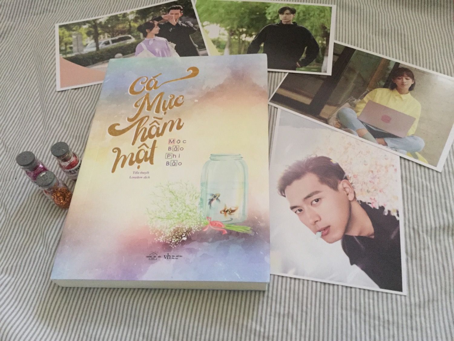 Cá Mực Hầm Mật gồm 2 phiên bản trong đó Bản Đặc Biệt Tặng Kèm Postcard “Hàn Thương Ngôn!” Cô khẽ ngẩng đầu lên: “Em thích anh.” Là một tiểu thiên hậu xinh đẹp đáng yêu trong giới cover nhạc, Đồng Niên chưa bao giờ nghĩ mình lại trúng tiếng xét ái tình với một người đàn ông. Hơn thế nữa, người này hơn cô những 10 tuổi lận. Địa điểm lại vô cùng đặc biệt trong một lần đến quán chơi game, để rồi từ đó cô gái bé nhỏ theo đuổi bằng được ông chu về nhà mình. Cô cho rằng mình sẽ theo đuổi soái ca trong thế giới thực, không ngờ người này lại là một đại thân cao cao đỉnh đỉnh trong thế giới game chuyên nghiệp. Cô thích anh đến mức hận không thể có hai mươi lăm tiếng để ở bên cạnh anh, kề bên anh, nhìn anh tức giận, nhìn anh cười, nhìn anh nổi đóa,… hay đơn giản chỉ là nhìn anh chăm chú làm việc. Còn anh thì sao? “Ngoài biết anh tên là Hàn Thương Ngôn, em còn biết gì nữa?” Cô ngẩn ra, còn biết cái gì nữa à? Thực ra đều rất vụn vặt. Tư liệu về anh thật sự quá í “Hết rồ” Cô thành thật giải thích, “Chỉ xem video phỏng vấn và thi đấu công khai của anh.” Anh yên lặng ba giây. Sau đó tiếp tục cất tiếng, “Hàn Thương Ngôn, sinh ngày 14 tháng 2 năm 1986 tại Nauy, năm 2004 đổi thành quốc tịch Trung Quốc, từng là tuyển thủ thể thao điện tử chuyên nghiệp, xếp hạng và thành tích đã có trên mạng, năm 2005 giải nghệ. Học mấy năm đại học, chuyên ngành thiết kế công nghiệp, sau khi tốt nghiệp thành lập câu lạc bộ K&K tại Mỹ, anh là người đầu tư số một, cũng là một trong những ông chủ của câu lạc bộ này. Từ năm 2013, sau khi thành lập K&K China, anh thường xuyên ở Trung Quốc.” Nội dung giới thiệu tỉ mỉ, những tư liệu ngay cả bách khoa toàn thư Baidu cũng không thể có Mà được nói ra từ miệng anh, từng câu một, nói với cô. Dường như đang nói: Đồng Niên, hoan nghênh em đến với thế giới của anh. Hàn Thương Ngôn chưa bao giờ là một người hay biểu lộ cảm xúc tình cảm trong lòng, lãng mạn gì đó đối với anh đều không cần. Chỉ có một điều rằng, Đồng Niên em có muốn anh bao nhiêu, anh cũng muốn có em bấy nhiêu. Trừ em ra không cần ai khác cả. Cả cuộc đời dài như thế, anh sẽ dành hết cho em. Cá mực hầm mật – Cuốn tiểu thuyết muốn ngọt ngào, nhẹ nhàng như một gia vị thêm vào cuộc sống của chúng mình rằng “ Tình yêu, đơn giản chỉ là như thế”