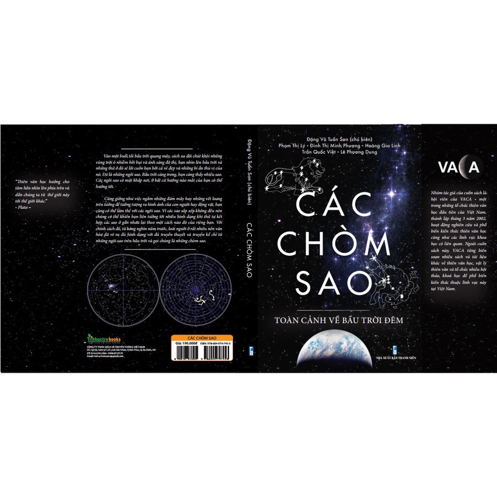 Công ty phát hành: Tri Thức Trẻ Tác giả: Nhiều tác giả Nhà xuất bản: NXB Thanh Niên Năm xuất bản: 2020 Số trang: 296 Giới thiệu sách: “Các chòm sao: Toàn cảnh về bầu trời đêm” – cuốn sách giá trị cho người đam mê khoa học và yêu thích bầu trời đêm. Không có bất cứ tài liệu nào có thể khẳng định chính xác xem liệu rằng từ khi nào con người đã bắt đầu quan sát bầu trời đêm. Đó có thể là thời điểm sơ khai của tổ chức xã hội loài người, hay từ những tổ tiên xa xôi hàng triệu hoặc hàng chục triệu năm trước. Nhưng có một điều chắc chắn là từ khi con người bắt đầu tìm hiểu và ghi nhận các quy luật của thế giới tự nhiên, thì bầu trời là một trong những đối tượng thu hút được nhiều sự chú ý nhất. Bầu trời sẽ chẳng đáng nhận được quá nhiều sự chú ý nếu nó luôn chỉ có một màu xanh duy nhất và bất động. Nó cuốn hút con người bởi có chuyển động của Mặt Trời, Mặt Trăng, các đám mây, và hiển nhiên là cả hàng nghìn ngôi sao mà bạn có thể thấy mỗi đêm. Bạn biết không, ở những khu vực trời tương đối trong và góc nhìn đủ rộng, mắt của một người bình thường có thể nhìn thấy cùng lúc hơn 2.000 sao, và vì các sao sẽ lặn về phía Tây để các sao khác mọc lên từ phía Đông nên nếu quan sát trong cả đêm thì số sao sẽ là khoảng 5.000. Tất cả các sao mà bạn quan sát được bằng mắt thường như vậy là sao nằm trong thiên hà Milky Way của chúng ta, và chỉ ở khoảng cách tương đối gần – tối đa là trên 10.000 năm ánh sáng. Bây giờ, hãy thử nhớ lại hình ảnh bầu trời sao mà bạn từng nhìn thấy – nếu như bạn đã ít nhất một lần quan sát nó. Bạn thấy rằng các ngôi sao không phải những chấm sáng giống nhau và rải đều trên bầu trời. Chúng sắp xếp không đều nên có những khu vực rất nhiều sao, còn khu vực khác lại thưa thớt hơn. Có sao rất sáng và cũng có sao rất mờ. Thậm chí nếu như trời đủ trong, bạn còn có thể nhận thấy màu sắc của chúng cũng khác nhau: trắng, vàng, đỏ, xanh lam… Vì các sao sắp xếp không đều nên chúng có thể khiến bạn liên tưởng tới nhiều hình dạng khi thử tự kết hợp các sao ở gần nhau lại theo một cách nào đó của riêng bạn. Với chính cách đó, từ hàng nghìn năm trước, loài người ở rất nhiều nền văn hóa đã vẽ ra đủ hình dạng với đủ truyền thuyết và truyện kể chỉ từ những ngôi sao trên bầu trời và gọi chúng là “những chòm sao”. Trong cuốn sách này, chúng ta sẽ khám phá về những chòm sao trên bầu trời của chúng ta, từ lịch sử và truyền thuyết tới việc quan sát chúng ngày nay. Khác với phong cách quen thuộc của nhiều tác giả khoa học trong nước, cuốn sách này có cách tiếp cận dễ hiểu và văn phong gần gũi, cuốn hút, có giá trị với việc khơi dậy cảm hứng và đam mê khoa học cho người đọc. Bên cạnh văn phong và cách trình bày hấp dẫn, các tác giả cũng đã mang lại nhiều thông tin thú vị cho những người thích quan sát bầu trời. Ở đó không chỉ có giai thoại, lịch sử hay hình dạng của các chòm sao mà còn có những thông tin bổ ích về cách quan sát bầu trời, về ý nghĩa của việc phân chia các chòm sao. Bên cạnh đó, các tác giả còn thành công trong việc truyền cảm hứng về tính chân thật, giản dị nhưng hết sức cuốn hút của khoa học, tách rời khoa học khỏi những luồng quan điểm mê tín vốn phổ biến ngày nay. Thông tin nhóm tác giả: Nhóm tác giả của cuốn sách là hội viên của VACA – một trong những tổ chức thiên văn học đầu tiên của Việt Nam, thành lập tháng 3 năm 2002, hoạt động nghiên cứu và phổ biến kiến thức thiên văn học cũng như các lĩnh vực khoa học có liên quan. Ngoài cuốn sách này, VACA từng biên soạn nhiều sách và tài liệu khác về thiên văn học, vật lý thiên văn và tổ chức nhiều hội thảo, khoá học để phổ biến kiến thức thuộc lĩnh vực này tại Việt Nam.