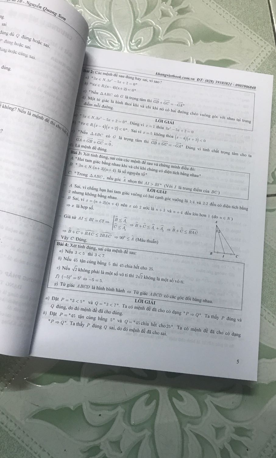 Các Chuyên Đề Nâng Cao Và Phát Triển Đại Số Lớp 10 được biên soạn nhằm mục đích “hệ thống hóa kiến thức từ cơ bản đến nâng cao với một lượng bài tập ví dụ từng dạng rất chi tiết từ dễ đến khó, để các em tự học một cách trọn vẹn”. Đồng thời, cuốn sách là tài liệu rất tốt giúp cho học sinh và quý vị phụ huynh làm nguồn tài liệu để luyện thi vào các trường Đại học và Cao đẳng (Thi Trung Học Phổ Thông Quốc Gia). Cuốn sách gồm 6 chương: Chương I: Mệnh Đề – Tập Hợp Chương Ii: Hàm Số Bậc Nhất – Bậc Hai Chương Iii: Phương Trình – Hệ Phương Trình Chương Iv: Bất Đẳng Thức – Bất Phương Trình Chương V: Thống Kê Chương VI: Cung Và Góc Lượng Giác – Công Thức Lượng Giác Mỗi chương được tóm tắt lý thuyết đầy đủ. Bài tập trong mỗi chương được phân dạng rất rõ ràng, mỗi dạng có tóm tắt phương pháp giải và ví dụ minh họa tương ứng. Bài tập phân bố trong mỗi chương hoặc mỗi phần được sắp xếp từ dễ đến khó, trong mỗi dạng đều có lồng vào những bài tập của dạng thi Đại học. Những bài tập dễ nhằm mục đích giúp các em nắm rõ lý thuyết và phương pháp rồi trên cơ sở đó để các em giải những bài toán nâng cao hơn.Nội dung của mỗi chương được trình bày theo bố cục bài học trong sách giáo khoa.Cuốn sách được trình bày ngắn gọn, rõ ràng, với một lượng bài tập rất lớn và rất đầy đủ đa dạng; các bài tập được giải chi tiết, chặt chẽ, dễ hiểu.