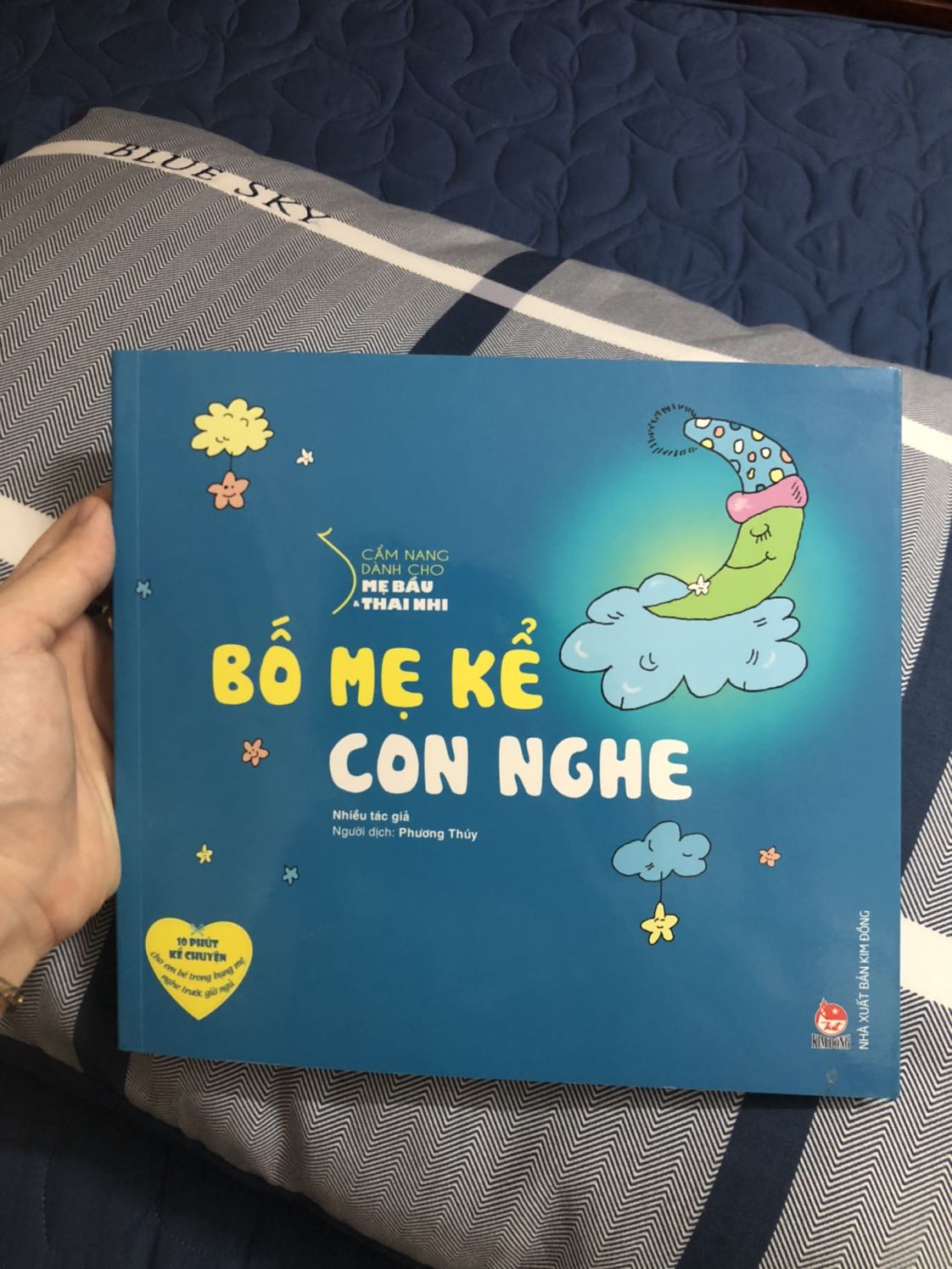 Cẩm Nang Dành Cho Mẹ Bầu Và Thai Nhi -Bố Mẹ Kể Con Nghe (Tái Bản 2017) Thai giáo là hành trình cần sự đồng hành của cả bố, mẹ và các thành viên khác trong gia đình.Khi chào đời, em bé nào cũng mang tiềm năng thiên tài như Edison, Shakespeare, Beethoven, Picasso. Nhưng làm sao để phát triển được tiềm năng ấy? Câu trả lời là: hãy tiến hành thai giáo thật khoa học. Nhiều ông bố bà mẹ coi thai giáo là một việc phức tạp, đòi hỏi nhiều công sức nhưng thực ra đơn giản vô cùng. Chỉ cần bố mẹ dành chút thời gian trước khi đi ngủ, giữ tâm trạng vui vẻ, cảm xúc ấm áp, nghe bản nhạc êm dịu hoặc kể chuyện bằng giọng nói dịu dàng với em bé trong bụng cũng là những cách thai giáo dễ làm mà hiệu quả.Cuốn sách này tuyển chọn những câu chuyện thai giáo thú vị để giúp các bố mẹ gắn kết tình cảm, kích thích não bộ, vun đắp trái tim biết yêu thương cùng những phẩm chất tốt đẹp cho bé ngay từ khi còn trong bụng mẹ. Những câu chuyện sinh động, tích cực, ngập tràn niềm vui trong sách sẽ dần gợi ra cho bé những tri thức về thế giới rực rỡ muôn màu và cha mẹ bé sẽ được trải nghiệm hành trình mang thai đong đầy yêu thương và hạnh phúc. Bằng việc yêu thương và quan tâm với em bé còn đang trong bụng mẹ, các thành viên trong gia đình sẽ góp phần tích cực trong việc xây dựng và hình thành nhân cách cho em bé trong tương lai. Bất cứ em bé nào được yêu thương như vậy sẽ chào đời mạnh khỏe và luôn có trái tim biết yêu thương hết mực.
