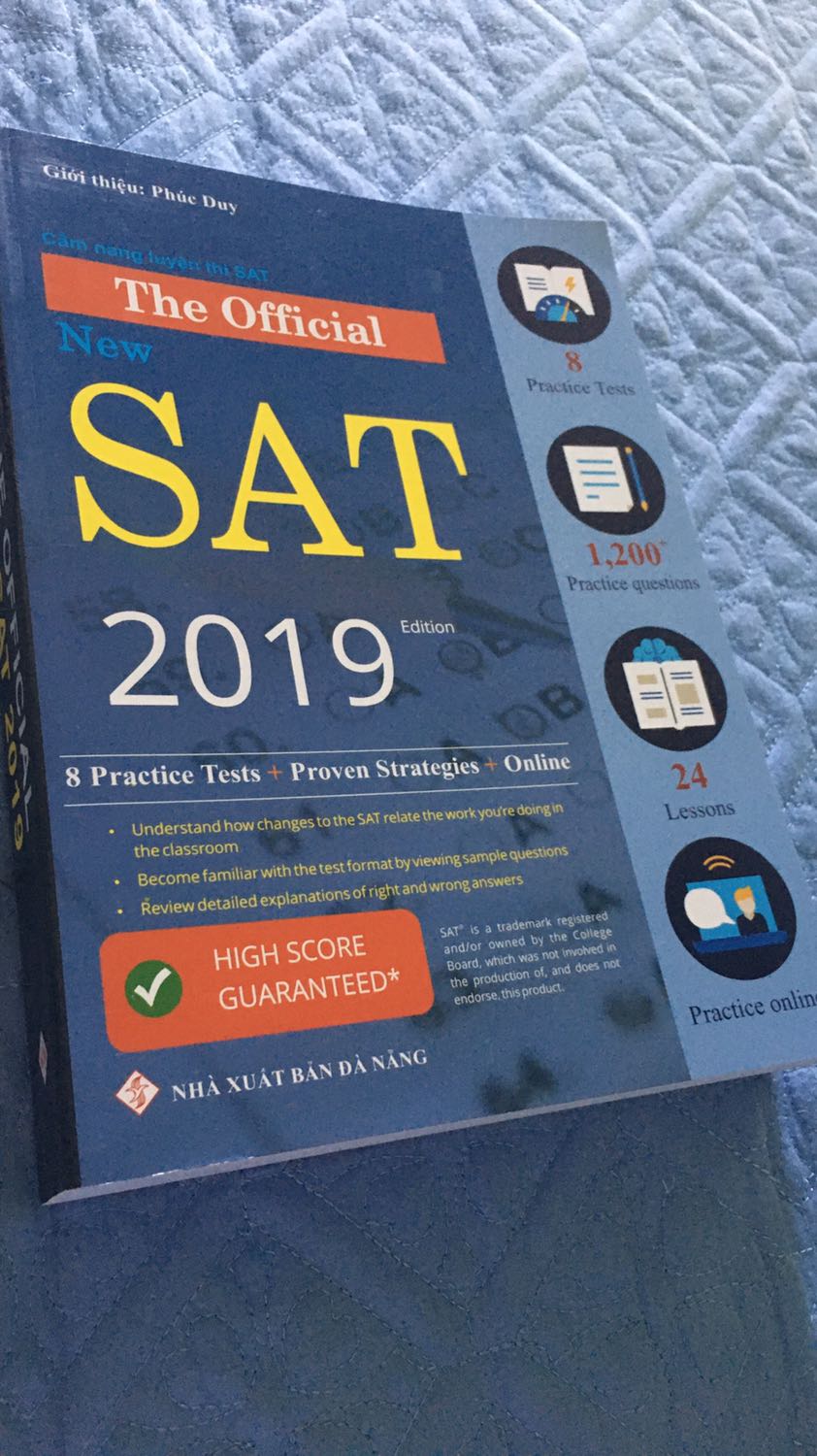 Cẩm Nang Luyện Thi SAT – The Official New SAT (2019 Edition) SAT là một kỳ thi rất quan trọng, ảnh hưởng rất nhiều đến kết quả của bộ Hồ sơ du học của các bạn. Đặc biệt là với những bạn muốn được nhận vào các trường Top đầu tại Mỹ và xin được những suất Học bổng giá trị cao. Hầu hết các trường Đại học tại Mỹ đều lấy điểm SAT là thước đo về học thuật cho các học sinh để xét đầu vào. Chúng tôi xin giới thiệu cuốn “Cẩm Nang Luyện Thi SAT – The Official New SAT (2019 Edition)” – đầu sách luyện thi SAT hiệu quả nhất năm 2019