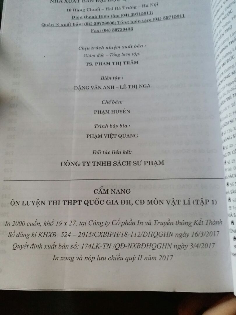 Sách Cẩm Nang Ôn Luyện Thi THPT Quốc Gia Đại Học Cao Đẳng Môn Vật Lí (2 tập) (tặng kèm 2 bookmark như hình), Tác giả: Nguyễn Anh Vinh, Công ty phát hành – Ngày xuất bản 02-2018 Kích thước 19 x 27 cm Loại bìa Bìa mềm Số trang 1836 SKU 3318370980585 Nhà xuất bản Nhà Xuất Bản Đại Học Quốc Gia Hà Nội.