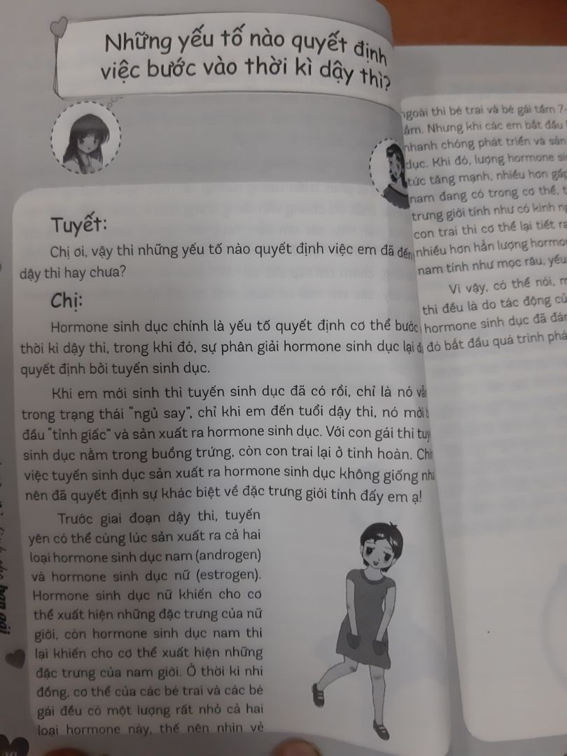 Cẩm Nang Tuổi Dậy Thì Dành Cho Bạn Gái Bước vào tuổi dậy thì, các bạn gái sẽ dần cảm nhận được những biến đổi cả về tâm lí và sinh lí. Những biến đổi đó không chỉ khiến bạn gái cảm thấy bất ngờ thú vị mà còn làm các bạn thấy tò mò, xấu hổ, cùng với một chút bỡ ngỡ, lo lắng. Biết bao nhiêu điều các bạn muốn biết, cần biết nhưng lại ngại ngùng không dám hỏi cha mẹ, thầy cô. Những câu hỏi đó dần trở thành một dấu hỏi lớn mà mỗi bạn giấu kín trong lòng, chỉ dám nhỏ to tâm sự cùng bạn bè thân thiết nhất thôi.
