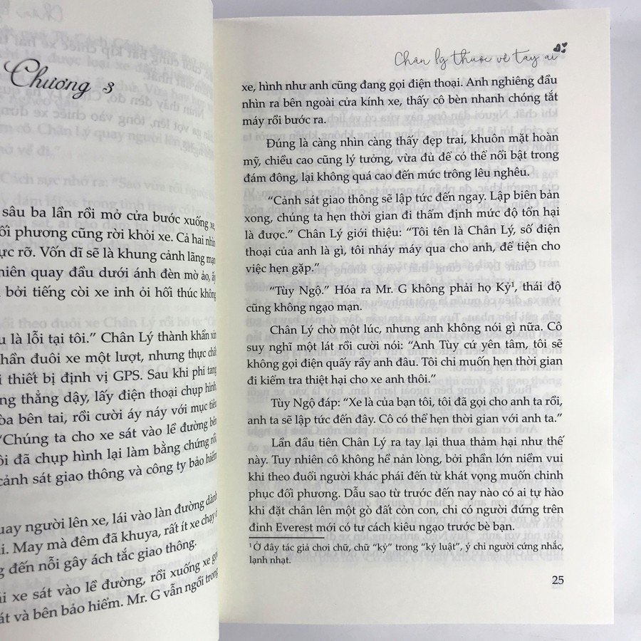 Chân Lý Thuộc Về Tay Ai (Bộ 2 quyển) (Kèm Bookmark) “Địch tiến ta lui, địch lui ta tiến. Tình yêu chính là một trận chiến, ta phải luôn coi người yêu như chính kẻ địch của mình. Là mưa thuận gió hòa, hóa thù thành bạn, hay là đánh nhau tan tác không chừa manh giáp?” Cô là Chân Lý – một cô gái sở hữu cả nhan sắc mê người lẫn bộ óc thông minh xuất chúng, song từ bé không nhận được tình yêu thương của gia đình nên dần đánh mất mục tiêu, chìm vào cuộc sống buông thả. Anh là Tùy Ngộ – một người đàn ông anh tuấn đầy bản lĩnh và lý trí, đang trong thời kỳ sự nghiệp thăng hoa. Năm hai mươi hai tuổi, cô theo đuổi anh, trao cho anh tình yêu tuổi trẻ nồng nhiệt nhất, nhưng kết cục cũng chính cô “vung kiếm chặt đứt tơ tình”, khiến hai người phút chốc xa rời nhau trong đau khổ và tiếc nuối. Bảy năm sau, Chân Lý từ thiếu nữ bồng bột ngày nào trở thành một người phụ nữ trưởng thành trầm tĩnh, coi chuyện tình cảm như gió thoảng mây bay. Nào ngờ Tùy Ngộ lại một lần nữa xuất hiện trong cuộc đời cô, quyết tâm truy đuổi đến cùng trái tim đã đóng băng của cô. Liệu lần này anh có thể thành công lật ngược thế cờ, giành được cơ hội yêu thương cô trọn đời không? ~*~*~*~*~*~ Công ty phát hành Shinebooks Tác giả Minh Nguyệt Đang Ngày xuất bản 11-2019 Kích thước 14.5 x 20.5 cm Nhà xuất bản Nhà Xuất Bản Phụ nữ Loại bìa Bìa mềm Số trang 1028/ 2 quyển ~*~*~*~*~*~ #sách , #sáchvănhọc-tiểuthuyết, #lightnovel, #diệplạcvôtâm, #bts, #bạnđắtgiábaonhiêu, #sáchbts, #sáchđammỹ, #sáchhay, #nhàsáchonline, #vãntình