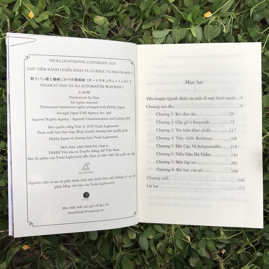 Chủ Tiệm Bánh Chiến Binh Và Cô Phục Vụ Người Máy 3 (Kèm Bookmark, Poster, Postcard) ______ Theo chiến lược kinh doanh mới, Sven và Jacob đến thị trấn Saupunkt để bán bánh. Tuy nhiên, cuộc gặp gỡ định mệnh của Jacob tại thị trấn này đã khiến Tockerbrot điêu đứng và mở ra một sự kiện nghiêm trọng. Cuộc chiến doanh số xoay quanh Jacob có liên quan tới âm mưu của Đội cận vệ Wiltia, vụ việc dần trở nên hỗn loạn. Những ngày tháng yên bình của Lud có thật sự tới không đây? Mục lục Tiền truyện: Quyết định của một cỗ máy hình người Chương mở đầu + Chương 1: Kẻ cầm cân + Chương 2: Gặp gỡ ở Saupunkt + Chương 3: Tín hiệu khai chiến + Chương 4: Trận chiến Bolsburn + Chương 5: Đội Cận Vệ Schutzstaffel + Chương 6: Diều Hâu Đỏ Thẫm + Chương 7: Một lớp vỏ + Chương 8: Bài học của sói Chương cuối Lời bạt —-o0o—- Công ty phát hành Tsuki LightNovel Tác giả Sow Ngày xuất bản 06-2020 Kích thước 13 x 18 cm Nhà xuất bản Nhà Xuất Bản Thế Giới Loại bìa Bìa mềm Số trang 376 ======= #sách , #sáchvănhọc-tiểuthuyết, #lightnovel, #diệplạcvôtâm, #bts, #bạnđắtgiábaonhiêu, #sáchbts, #sáchđammỹ, #sáchhay, #nhàsáchonline, #vãntình