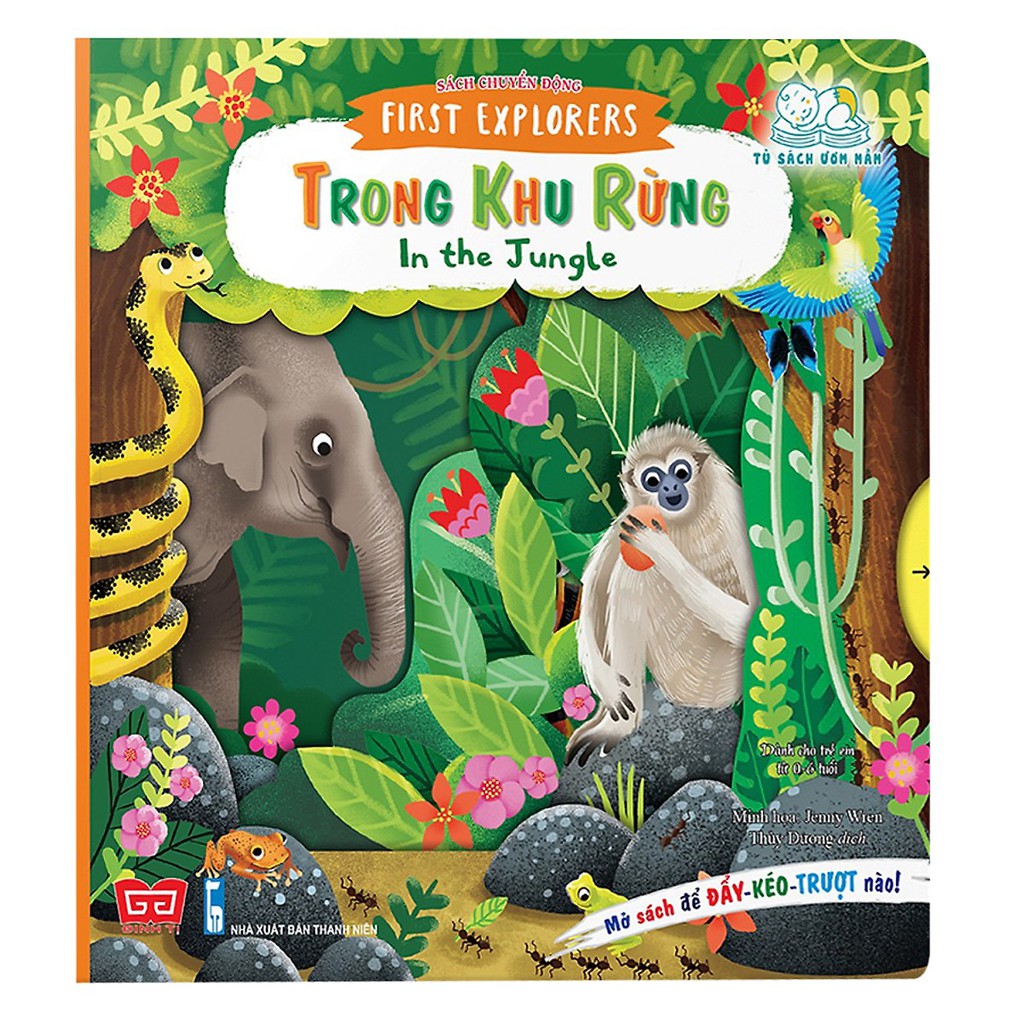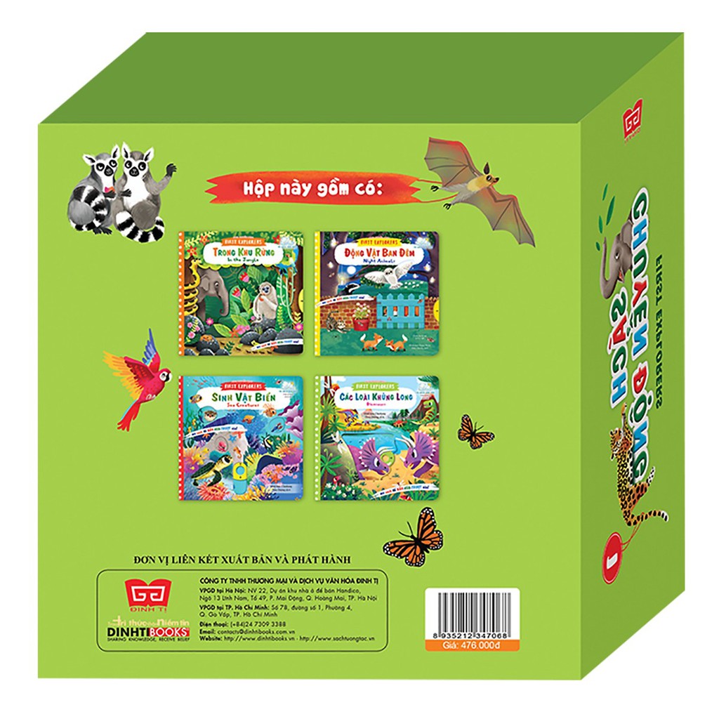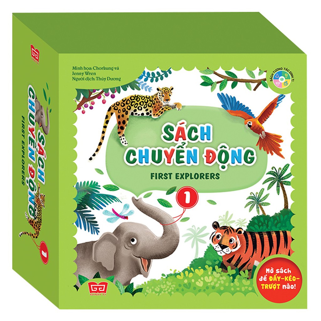 thông tin chi tiết Công ty phát hành Đinh Tị Tác giả Nhiều Tác Giả Ngày xuất bản 07-2019 Kích thước 17 x 17 cm Nhà xuất bản Nhà Xuất Bản Thanh Niên Loại bìa Bìa mềm GIỚI THIỆU SÁCH Thích thú với những trang sách có thể đẩy – kéo – trượt và nội dung bổ ích của những cuốn sách chuyển động First Explorers, nhà báo – chuyên viên PR tự do Emma O’Donovan đã nói về những cuốn sách này trên tạp chí Baby LonDon: “Những cái xoay và thanh trượt hấp dẫn sẽ lôi kéo những bàn tay nhỏ bé khám phá vô số điều thú vị, từ vũ trụ bao la đến các động vật nhỏ trong rừng. Bộ sách này cân bằng giữa việc chơi vui vẻ và những kiến thức giáo dục một cách hấp dẫn.” Hộp sách gồm 4 cuốn: Trong khu rừng – In the Jungle Động vật ban đêm – Night Animals Sinh vật biển – Sea Creatures Các loài khủng long – Dinosaurs