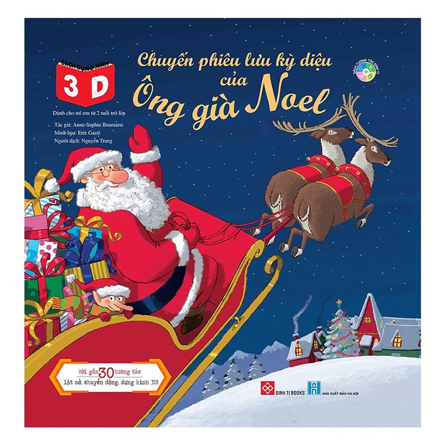 Công ty phát hành: Đinh Tị Tác giả: Nhiều tác giả Nhà xuất bản: NXB Hà Nội Năm xuất bản: 2019 Số trang: 22 Giới thiệu sách: Sách dựng hình 3D – Chuyến phiêu lưu kỳ diệu của Ông già Noel mang đến cho bạn nhỏ những điều hiếu kỳ nho nhỏ trong cuộc sống với: – Những hình ảnh cực kỳ ấn tượng! – Những thông tin tham khảo đáng ngạc nhiên. – Một câu chuyện cực hay Hãy mở sách ra và khám phá nhé.
