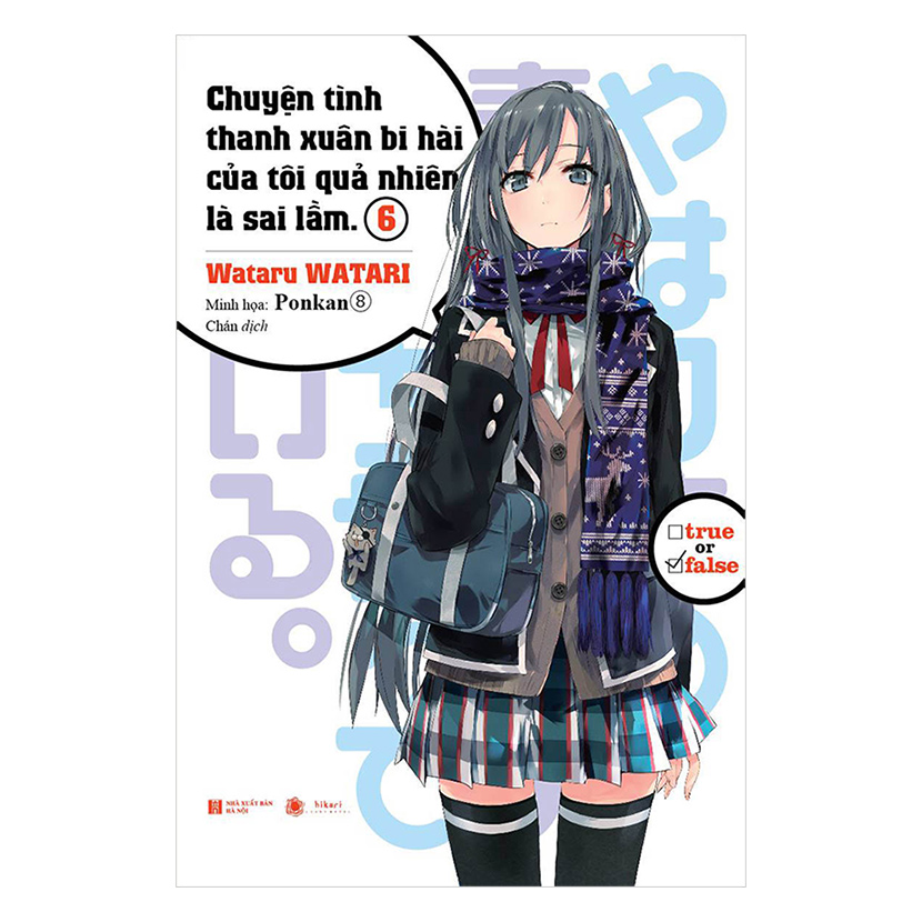 Chuyện Tình Thanh Xuân Bi Hài Của Tôi Quả Nhiên Là Sai Lầm 6 Chuyện tình thanh xuân bi hài của tôi quả nhiên là sai lầm. (tên gốc: Yahari Ore no Seishun Rabukome wa Machigatteiru., gọi tắt là Oregairu), là một trong những series light novel ăn khách nhất trong vòng 20 năm trở lại đây, bộ truyện được viết bởi tác giả trẻ Wataru WATARI, do họa sĩ Ponkan8 vẽ minh họa và được xuất bản bởi NXB nổi tiếng Shogakukan. Chuyện tình thanh xuân bi hài của tôi quả nhiên là sai lầm. đã dành giải light novel hay nhất của bảng xếp hạng uy tín Kono light novel ga sugoi! trong 3 năm liên tiếp là 2014, 2015 và 2016. Bên cạnh đó, nam chính và nữ chính của series này là Hachiman và Yokin oshita cũng đoạt giải nam nữ chính được yêu thích nhất trong các năm đó. Họa sĩ minh họa Ponkan8 với những bức tranh minh họa đẹp và sinh động của mình cũng được bình chọn là họa sĩ minh họa được yêu thích nhất trong năm 2015. Đến thời điểm hiện tại, series đã phát hành được 12 tập, nhưng số sách bán ra đã vượt mốc 7 triệu bản, một con số mà những đầu sách nổi tiếng như Cô gái văn chương hay Sói & Gia vị cũng chưa từng làm được. Lễ Hội văn hóa. Cách để trốn được các công việc phiền phức là… bị gọi cũng không trả lời, thể hiện ra mặt sự khó chịu của mình!? Hachiman sử dụng toàn bộ kỹ năng của một kẻ cô đơn để trốn tránh công việc chuẩn bị lễ hội. Tuy nhiên, cậu đã bị bắt làm thành viên của ban tổ chức lễ hội trong một lần trốn tiết sinh hoạt. Học kỳ mới đã bắt đầu, thế nhưng Hachiman có gì đó hơi lạ lùng. Cả trong lớp lẫn câu lạc bộ… Thắc mắc của cậu đối với Yukinoshita vẫn còn đó, thế nhưng cậu lại không đặt câu hỏi. Yukinoshita và Hachiman, cả hai người không thể tiến lên phía trước cũng như không thể quay đầu lại. Liệu sẽ có sự thay đổi nào cho khoảng cách vẫn không thể rút ngắn này không? Đây là tập 6 của series đang rất được ưa chuộng.