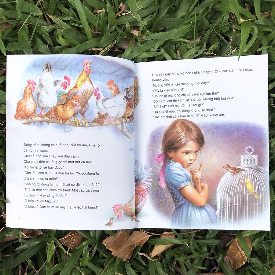 Cô Bé Mác-tin Chăm Sóc Bạn Chim Sẻ Mác-tin nhặt được một chú sẻ non bị rơi khỏi tổ. Cô bé mang chú chim nhỏ về nuôi và đặt tên chú là Pi-e-rô. Chim sẻ ngày một lớn. Chú muốn khám phá tất cả mọi thứ xung quanh. Mác-tin hiểu ra rằng, đã đến lúc Pi-e-rô cần học cách sống tự lập như một chú chim trưởng thành. Từ khi ra đời vào năm 1954, những câu chuyện thường ngày của Cô bé Mác-tin đã tạo nên những điều phi thường. Khi đọc Mác-tin, trẻ em được sống trong những cảm xúc trong trẻo, tươi đẹp nhất; người lớn tìm lại được một góc thơ ấu của chính mình. Vì vậy, cô bé Mác-tin đã trở thành bạn với nhiều thế hệ trẻ em khắp thế giới. Bộ truyện này đặc biệt nổi tiếng bởi các bức tranh minh họa sống động, trải cả thiên nhiên ra trước mắt người đọc. Quanh quanh căn nhà ở đồng quê, trang trại với nhiều thú nuôi, cuộc sống của Mác-tin đẹp như tranh vẽ, ngập tràn nắng và tình yêu thương… ~~~~…….~~~~ Công ty phát hành Nhà Xuất Bản Kim Đồng Tác giả Nhiều tác giả Ngày xuất bản 06-2020 Kích thước 19 x 24 cm Nhà xuất bản NXB Kim Đồng Loại bìa Bìa mềm Số trang 20 #ehon, #flashcard, #sách-truyệnthiếunhi, #btscomic, #thẻhọcthôngminhchobé, #thẻhọcthôngminh, , #ăndặm, #bộthẻhọcthôngminh, #truyệncổtích, #ăndặmkiểunhật, #ăndặmkhôngphảilàcuộcchiến, #đểconđượcốm, , #sáchlậtmở, #sáchăndặm, #truyệntranh, #10vạncâuhỏivìsao, #báchkhoatoànthưchobé, #sáchchiếubóng, #flashcardstiếnganh, #glenndoman, #sáchnuôiconkhôngphảicuộcchiến, #flashcard, #thẻhọc, #combo, #sáchhay, #nhàsáchonline