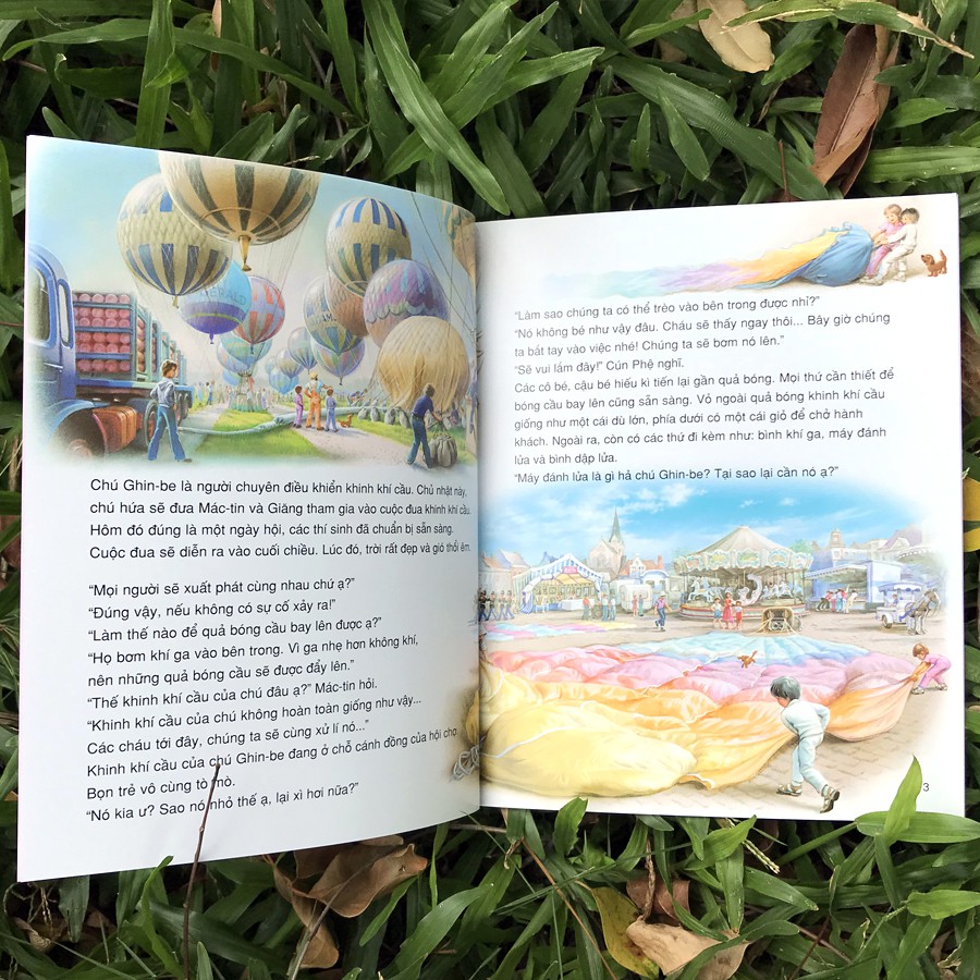 Cô Bé Mác-tin Du Ngoạn Bằng Khinh Khí Cầu Chủ nhật hôm đó là một ngày vô cùng đặc biệt. Mác-tin được tham gia cuộc đua khinh khí cầu cùng chú Ghin-be. Trên bầu trời, người điều khiển khinh khí cầu phải rất khéo léo và có nhiều kinh nghiệm mới lựa được sức gió. Chú Ghin-be quả là tài! Chú điều khiển chiếc khinh khí cầu nhẹ nhàng trôi bồng bềnh trong không khí và đưa các bạn nhỏ hạ cánh an toàn xuống một bãi cát. Họ đã giành chiến thắng! Từ khi ra đời vào năm 1954, những câu chuyện thường ngày của Cô bé Mác-tin đã tạo nên những điều phi thường. Khi đọc Mác-tin, trẻ em được sống trong những cảm xúc trong trẻo, tươi đẹp nhất; người lớn tìm lại được một góc thơ ấu của chính mình. Vì vậy, cô bé Mác-tin đã trở thành bạn với nhiều thế hệ trẻ em khắp thế giới. Bộ truyện này đặc biệt nổi tiếng bởi các bức tranh minh họa sống động, trải cả thiên nhiên ra trước mắt người đọc. Quanh quanh căn nhà ở đồng quê, trang trại với nhiều thú nuôi, cuộc sống của Mác-tin đẹp như tranh vẽ, ngập tràn nắng và tình yêu thương… Công ty phát hành Nhà Xuất Bản Kim Đồng Tác giả Nhiều tác giả Ngày xuất bản 06-2020 Kích thước 19 x 24 cm Nhà xuất bản NXB Kim Đồng Loại bìa Bìa mềm Số trang 20 trang —– #ehon, #flashcard, #sách-truyệnthiếunhi, #btscomic, #thẻhọcthôngminhchobé, #thẻhọcthôngminh, , #ăndặm, #bộthẻhọcthôngminh, #truyệncổtích, #ăndặmkiểunhật, #ăndặmkhôngphảilàcuộcchiến, #đểconđượcốm, , #sáchlậtmở, #sáchăndặm, #truyệntranh, #10vạncâuhỏivìsao, #báchkhoatoànthưchobé, #sáchchiếubóng, #flashcardstiếnganh, #glenndoman, #sáchnuôiconkhôngphảicuộcchiến, #flashcard, #thẻhọc, #combo, #sáchhay, #nhàsáchonline