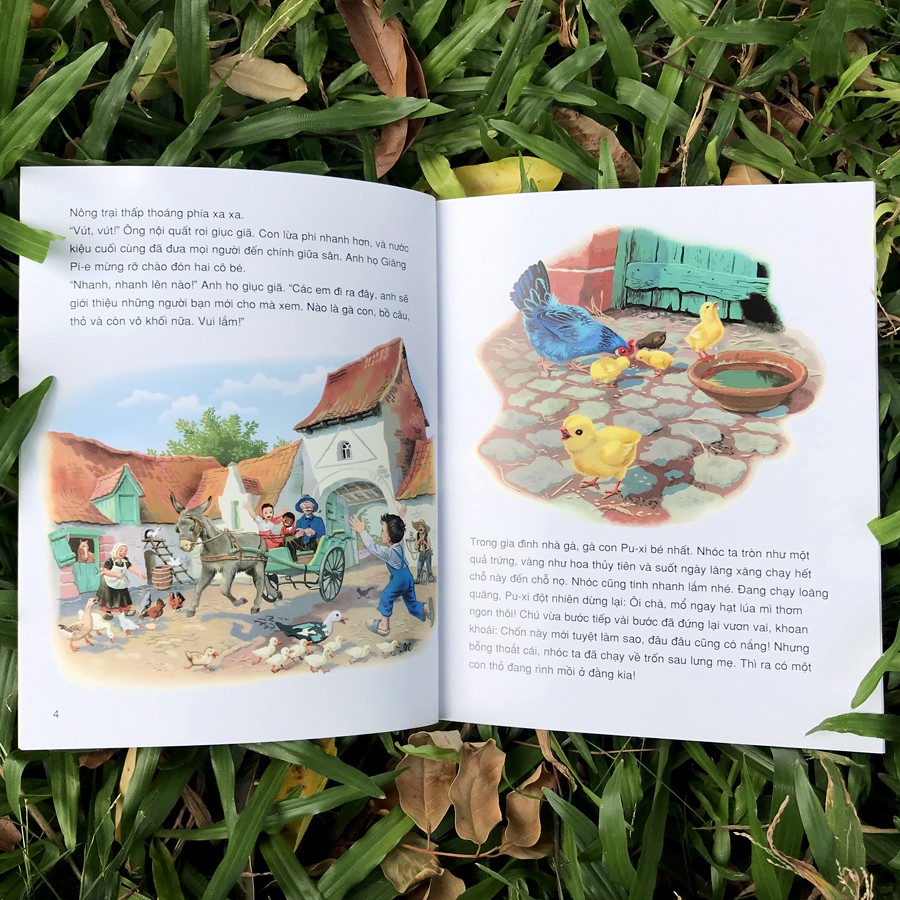 Cô Bé Mác-tin Về Nông Trại Một trong những điều khiến Mác-tin vui sướng nhất là được đến nông trại của dì Lu-xi. Đến đó cô có dịp gặp lại những người bạn động vật vô cùng đáng yêu: nào gà nhóc tinh nhanh, cừu non dễ mến, cô ngỗng tham ăn, bồ câu thông thái… Cuộc sống ở trang trại lúc nào cũng rộn ràng, đầy ắp niềm vui. Đến tận lúc ra về, Mác-tin vẫn còn lưu luyến… Từ khi ra đời vào năm 1954, những câu chuyện thường ngày của Cô bé Mác-tin đã tạo nên những điều phi thường. Khi đọc Mác-tin, trẻ em được sống trong những cảm xúc trong trẻo, tươi đẹp nhất; người lớn tìm lại được một góc thơ ấu của chính mình. Vì vậy, cô bé Mác-tin đã trở thành bạn với nhiều thế hệ trẻ em khắp thế giới. Bộ truyện này đặc biệt nổi tiếng bởi các bức tranh minh họa sống động, trải cả thiên nhiên ra trước mắt người đọc. Quanh quanh căn nhà ở đồng quê, trang trại với nhiều thú nuôi, cuộc sống của Mác-tin đẹp như tranh vẽ, ngập tràn nắng và tình yêu thương… ====”””’===== Công ty phát hành Nhà Xuất Bản Kim Đồng Tác giả Nhiều tác giả Ngày xuất bản 06-2020 Nhà xuất bản NXB Kim Đồng Loại bìa Bìa mềm Kích thước 19 x 24 cm Số trang 20 #ehon, #flashcard, #sách-truyệnthiếunhi, #btscomic, #thẻhọcthôngminhchobé, #thẻhọcthôngminh, , #ăndặm, #bộthẻhọcthôngminh, #truyệncổtích, #ăndặmkiểunhật, #ăndặmkhôngphảilàcuộcchiến, #đểconđượcốm, , #sáchlậtmở, #sáchăndặm, #truyệntranh, #10vạncâuhỏivìsao, #báchkhoatoànthưchobé, #sáchchiếubóng, #flashcardstiếnganh, #glenndoman, #sáchnuôiconkhôngphảicuộcchiến, #flashcard, #thẻhọc, #combo, #sáchhay, #nhàsáchonline