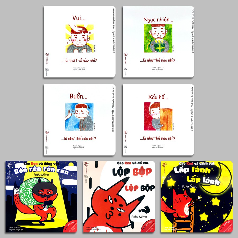 Combo 2 bộ Ehon “Chơi cùng cáo Ken” và “Điều kỳ diệu của cảm xúc” – Ehon Nhật Bản cho bé 0 – 6 tuổi Combo gồm 2 bộ sách: 1. Ehon Âm Thanh (Bộ 3 quyển) Các chuyên gia phân tích giáo dục cho rằng, độ tuổi từ 0 – 6 là khoảng thời gian mà trẻ em có khả năng ghi nhận tốt nhất các yếu tố từ môi trường xung quanh, nhất là các yếu tố tác động trực tiếp lên các giác quan của trẻ, đặc biệt là âm thanh, màu sắc, hình khối. Bộ sách ehon “Cáo Ken” – “Điều kỳ diệu của âm thanh” mang đến cho trẻ em Việt Nam cơ hội được tiếp xúc với một kho từ ngữ phong phú, đầy nhịp điệu nhờ vào những cụm từ láy, là chìa khóa để mở ra trong con những ý niệm đầu tiên cho sự phát triển âm thanh cũng như ngôn ngữ trong trẻ. Bộ sách ehon “Cáo Ken” gồm ba cuốn sách là “Cáo Ken và Đồ Vật”, “Cáo Ken và Cảnh Vật”, “Cáo Ken và Động Vật”. “Cáo Ken và Đồ Vật” mang tên “Lộp bộp lộp bộp”, gợi ra những âm thanh vô cùng “bắt tai” khi bạn cáo Ken sử dụng các đồ vật thường ngày: Gõ cánh cửa sẽ phát ra tiếng “cốc cốc cốc”, chiếc ô hứng mưa sẽ kêu “lộp bộp lộp bộp”, máy ảnh kêu “tách tách”, còn ô tô khởi động kêu “bờ-rừn, bờ-rừn”,… Mỗi đồ vật đều có những tiếng kêu đặc trưng giúp trẻ phân biệt được mà không cần phải ngước mắt lên nhìn. “Cáo Ken và Động Vật” lại là cuộc hành trình của bạn cáo Ken đến với thế giới “Rón rén rón rén” của các bạn động vật quanh mình. Trong cuộc hành trình này, trẻ sẽ thử nghiệm cách miêu tả, nhận biết các bạn ấy thông qua âm thanh, tiếng động mà phát ra chứ không phải bằng cách quan sát hay tiếp xúc nữa. Ốc sên thì “chầm chậm chầm chậm”, các chú cá “tung tăng tung tăng”, lợn kêu “ủn ỉn ủn ỉn”, ếch kêu vang “ếch ộp ếch ộp”, mẹ con vịt đi “lạch bạch lạch bạch”,… Các con vật đáng yêu sẽ giúp thế giới quanh trẻ trở nên sinh động hơn rất nhiều. Không chỉ giúp bé nhận biết thông qua hình ảnh, cuốn sách còn chú trọng sâu hơn vào âm thanh, kích thích trí não của bé trở nên tò mò và thích thú với những con vật. 2. Ehon Cảm Xúc (Bộ 4 quyển) Với mong muốn hình thành nên trong con trẻ một tâm hồn tươi đẹp với những xúc cảm kỳ diệu nhưng cũng vô cùng quen thuộc, bộ sách ehon “Điều kỳ diệu của cảm xúc” cho con khám phá thế giới cảm xúc vốn phức tạp nhưng lại nơi mà mọi điều tuyệt vời nhất của tâm hồn tìm đến. Cùng con xây dựng một tâm hồn đẹp là bố mẹ đã giúp con tận hưởng những giá trị nhân văn nhất của cuộc sống mỗi con người. Bộ sách ehon “Điều kỳ diệu của cảm xúc” phù hợp cho trẻ từ 0 – 6 tuổi, gồm 4 cuốn “Vui là như thế nào nhỉ?”, “Buồn là như thế nào nhỉ?”, “Ngạc nhiên là như thế nào nhỉ?” và “Xấu hổ là như thế nào nhỉ?” kể cho bé nghe những bí mật của cảm xúc thường ngày mà các con vẫn thường trải qua, từ đó cho con biết được những cảm xúc này phụ thuộc rất nhiều vào việc con đón nhận nó thế nào, đồng thời cho con niềm tin về quan điểm sống tích cực, vui vẻ, giúp con tận hưởng tất cả các cảm xúc một cách trọn vẹn nhất. Giá trị nhân văn mà bộ sách ehon Cảm xúc mang lại là hành vi khuyến khích trẻ hãy tự cảm nhận, tận hưởng và đôi khi là đối mặt với thế giới cảm xúc nhiều cung bậc, tìm cách để tự giải quyết các vấn đề xảy ra. Đó là cách để tâm hồn con trở nên “màu mỡ” hơn, từ đó phát triển trí thông minh cảm xúc (EQ), bồi đắp tâm hồn tươi đẹp cho con trẻ. Trong cuộc sống, không chỉ chúng ta giải quyết vấn đề thông minh như thế nào, mà chúng ta còn phải quản lý cảm xúc bản thân, cũng như với những người xung quanh khi có sự tương tác hai chiều về cách giải quyết vấn đề của chúng ta. Những bài học này là cần được luyện tập khi trẻ còn nhỏ. Công ty phát hành Wabooks Tác giả Nhiều tác giả Ngày xuất bản 03-2019 Kích thước 20 x 20 cm Nhà xuất bản Nhà Xuất Bản Lao Động – Xã Hội Loại bìa Bìa mềm Số trang 161 trang —– #ehon, #flashcard, #sách-truyệnthiếunhi, #btscomic, #thẻhọcthôngminhchobé, #thẻhọcthôngminh, , #ăndặm, #bộthẻhọcthôngminh, #truyệncổtích, #ăndặmkiểunhật, #ăndặmkhôngphảilàcuộcchiến, #đểconđượcốm, , #sáchlậtmở, #sáchăndặm, #truyệntranh, #10vạncâuhỏivìsao, #báchkhoatoànthưchobé, #sáchchiếubóng, #flashcardstiếnganh, #glenndoman, #sáchnuôiconkhôngphảicuộcchiến, #flashcard, #thẻhọc, #combo, #sáchhay, #nhàsáchonline