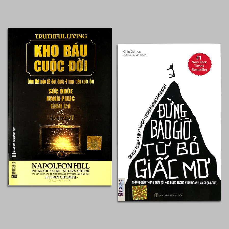 Combo 2 cuốn: Kho Báu Cuộc Đời + Đừng Bao Giờ Từ Bỏ Giấc Mơ Combo gồm 2 cuốn sách: 1.KHO BÁU CUỘC ĐỜI Làm thế nào để đạt được 4 mục tiêu cuộc đời: Sức khỏe, Hạnh phúc, Giàu có và Thành đạt – “Bản thân cuốn sách này không thể thay đổi cuộc đời bạn, nhưng hành động của bạn, kết hợp với sự sáng suốt và các thử thách trong cuốn sách này sẽ tạo ra bạn trong một phiên bản thành công hơn và thịnh vượng hơn” – Jeffrey Gitomer – Những trang sách về lẽ phải, sự tập trung, sống chính trực, khát khao, quyết định, thái độ, niềm tin, mục tiêu và cuộc sống vẫn còn nguyên giá trị trong trăm năm qua. “Khi đương đầu với những khó khăn tưởng chừng như không thể vượt qua, bỏ cuộc là con đường đơn giản và hợp lý nhất với tất cả mọi người. Đó chính xác là cách mà số đông mọi người đang làm” – Napoleon Hill Những bài học là những viên đá quý có giá trị vượt thời gian Cách đây vài năm, Quỹ Napoleon Hill đã khám phá ra những bài viết và bài dạy ban đầu của chính Napoleon Hill. Đây không chỉ đơn thuần là những văn bản viết tay đầu tiên của ông, mà nó còn là biểu tượng cho nền tảng và giá trị cốt lõi của tư tưởng mang tên Napoleon Hill – điều tạo nên di sản của ông. Napoleon Hill bắt đầu sự nghiệp của mình với vai trò là một giáo sư đại học tại Cleveland, nơi mà ông đã đem đến các bài giảng và bài học, đồng thời đây cũng là lúc ông nuôi ý nghĩ phải ghi chép lại mọi thứ mình đã giảng. Những bài giảng, bài học này đã được chắp bút vào khoảng 20 năm trước khi cuốn sách bất hủ Think and Grow Rich được xuất bản. Trên thực tế, những ghi chép này mới chính là những tài liệu viết tay đầu tiên của Napoleon Hill. Những ghi chép này là những suy nghĩ và ý tưởng ban đầu của ngài Hill về việc làm sao để có thể tập trung vào những mục tiêu quan trọng của mình, làm thế nào để có một thái độ tuyệt vời và gặt hái được thành công. Đây cũng là những bài giảng, bài học và tác phẩm đầu tiên trong sự nghiệp viết lách của ông. Song song với việc giảng dạy về quảng cáo và bán hàng, ngài Hill cũng tập trung vào thái độ, sự tự tin, việc viết lách, khả năng thuyết phục cùng các triết lý sống và triết lý cuộc đời. Những trang sách của cuốn “Kho báu cuộc đời” này chứa đựng những bài viết và thuyết giảng nguyên bản của ngài Hill vào năm 1917. Những bài học và bài giảng đầu tiên trong cuốn “Kho báu cuộc đời” đã đóng vai trò là nền tảng cho những quan điểm, triết lý, chiến lược và hệ tư tưởng trong suốt con đường viết lách của ông sau này. Hoàn toàn kinh điển. Thực sự xuất chúng. Có tất cả 23 bài học và bài thuyết giảng về lẽ phải, sự tập trung, sống chính trực, khát khao, quyết định, thái độ, niềm tin, mục tiêu và cuộc sống. Mặc dù được viết cách đây 100 năm, tất cả đều là những viên đá quý có giá trị vượt thời gian. Những bài giảng này đã được Jeffrey Gitomer chỉnh sửa cho phù hợp với bối cảnh và cách tiếp cận của thế kỷ XXI, những vẫn giữ nguyên năng lượng tích cực, quan điểm nguyên gốc và vị thế quan trọng của tác phẩm này. “Bản thân cuốn sách này không thể thay đổi cuộc đời bạn, nhưng hành động của bạn, kết hợp với sự sáng suốt và các thử thách trong cuốn sách này sẽ tạo ra bạn trong một phiên bản thành công hơn và thịnh vượng hơn” – Jeffrey Gitomer. === Công ty phát hành: BizBooks Tác giả: Napoleon Hill, Jeffrey Gitomer Ngày xuất bản: 2019 Kích thước: 13 x 20.5 cm Nhà xuất bản: Nhà Xuất Bản Hồng Đức Loại bìa: Bìa mềm Số trang: 384 2. ĐỪNG BAO GIỜ TỪ BỎ GIẤC MƠ Cuốn sách dành cho những con người đang gặp khó khăn, đang trăn trở, tìm cách vượt qua những thử thách tinh thần, niềm tin cuộc sống, để đạt được ước mơ, hoài bão của mình Thông qua câu chuyện thực tiễn của chính tác giả và những người xung quanh, cuốn sách truyền thêm động lực cho tất cả chúng ta để tiến về phía trước. Cuốn sách dành cho những con người đang gặp khó khăn, đang trăn trở, tìm cách vượt qua những thử thách tinh thần, niềm tin cuộc sống, để đạt được ước mơ, hoài bão của mình Đừng bao giờ từ bỏ giấc mơ Trong cuộc sống chúng ta, ai cũng có một ước mơ cho một ngày mai thật đẹp, dù bình dị hay phi thường – đó có thể là ước mơ rất đỗi giản dị của một cậu bé tật nguyền được bước đi bình thường như bao trẻ khác, hoặc đó là ước mơ tìm được việc làm mà mình yêu thích của một cô gái thất nghiệp, ước mơ trở thành nhạc sĩ nổi tiếng của một cậu bé không còn nhìn thấy ánh sáng, hoặc là những ước mơ chinh phục, vượt qua những thử thách, vươn lên để khẳng định và đạt được những gì mình ao ước. Những ước mơ đáng quý, đáng trân trọng đó luôn là niềm hy vọng, nguồn động lực cho mỗi người để sống, để cảm nhận và hướng đến tương lai. 
