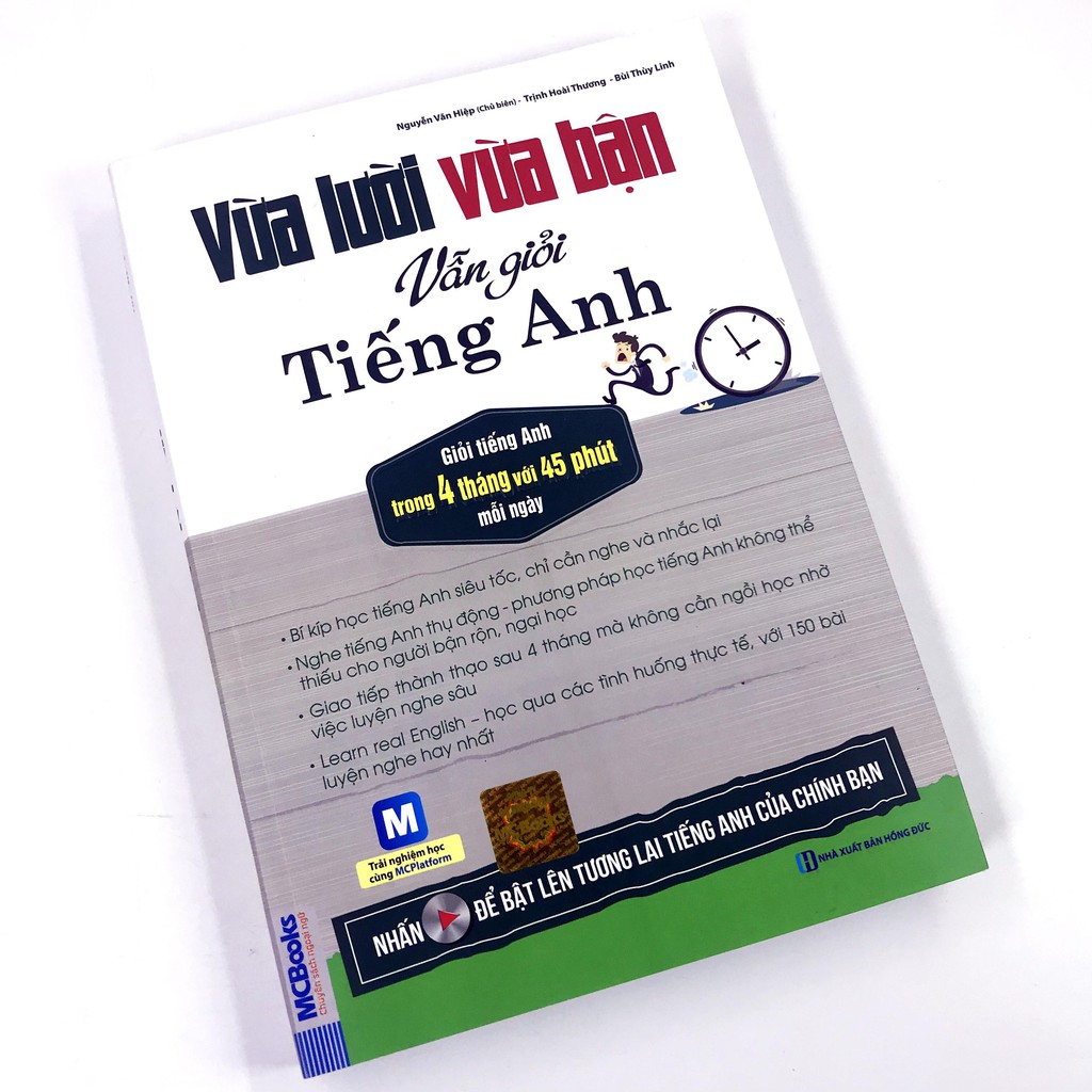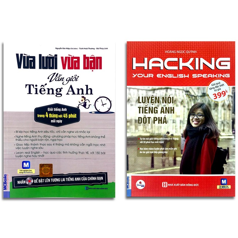 Combo Học Tiếng Anh Siêu Tốc, Hiệu Quả Cho Bạn: Vừa Lười Vừa Bận Vẫn Giỏi Tiếng Anh + Hacking Your English Speaking – Luyện Nói Tiếng Anh Đột Phá (Dùng Kèm App) Combo sách gồm 2 cuốn: 1. Vừa lười vừa bận vẫn giỏi tiếng Anh Bạn có muốn giỏi tiếng Anh mà không mất quá nhiều thời gian và không phải ngồi vào bàn học? Ai cũng muốn giỏi tiếng Anh nhưng khi bắt đầu được một thời gian thì lại thấy chán nản, không có động lực vì quá khó hoặc bản thân quá bận. Tuy nhiên, trong thực tế, mỗi ngày thì bất kỳ ai cũng có vài tiếng bộ não khá là thảnh thơi, bạn có thể hoàn toàn vừa giải trí vừa luyện tiếng Anh trong khoảng thời gian đó. Ví dụ như là nấu cơm, rửa bát, dọn nhà, đợi xe buýt hay là lúc chạy bộ tập thể dục nữa chẳng hạn… Cuốn sách “Vừa lười vừa bận vẫn giỏi tiếng Anh” được thiết kế như một sản phẩm học bằng âm thanh, sao cho ai cũng có thể học được, sách cũng hiệu quả cho cả người muốn học để giao tiếp thực tế trong đời sống và trong công việc. Cấu trúc của mỗi bài được thiết kế rất tối ưu để khán giả nghe và đọc theo vài lần là dùng được. Đặc biệt, lần đầu tiên các bạn học sẽ được trải nghiệm ứng dụng học nghe mới mẻ, tiện dụng giúp bạn có thể học tiếng anh ở mọi lúc mọi nơi. Sách được in theo màu chủ đạo là trắng đen và xanh. Tiếng Anh không khó, chỉ cần kiên trì và học chuyên tâm là bạn sẽ thành công! —- Công ty phát hành MCBooks Tác giả Nguyễn Văn Hiệp Nhà xuất bản Nhà xuất bản Phụ Nữ Năm xuất bản 2017 Kích thước 17 x 24 cm Số trang 339 Hình thức Bìa Mềm ====== 2. Hacking your English speaking – Luyện nói tiếng Anh đột phá Chương 1: Động lực học tiếng Anh Chương 2: IPA Chart (International Phonetic Alphabet) – Bảng ký tự phiên âm Quốc tế Chương 3: Stop thinking, Start Speaking. Học và sử dụng ngay các từ, cụm từ và cấu trúc câu thông dụng trong tiếng Anh nói. Luyện nói phản xạ tự động sử dụng sơ đồ tư duy sinh động và các câu minh họa đơn giản. Qua Chương 3, bạn sẽ học được tối thiểu 50 cấu trúc nói (speaking pattern) thông dụng, 500 từ và cụm từ tiếng Anh giao tiếp hay gặp nhất. Chương 4: Real English. 50 hội thoại tiếng Anh thông dụng nhất qua 4 bước thực hành sẽ giúp bạn phản xạ nói tiếng Anh được trong hầu hết các tình huống giao tiếp thông dụng. Bằng phương pháp ghi nhớ từ vựng qua ngữ cảnh, nghe nói phản xạ qua nghe audio và sử dụng sơ đồ hội thoại, nghe và bắt chước, cùng các language notes chi tiết, bạn sẽ có thể giao tiếp được trong hầu hết mọi tình huống thông dụng nhất. Chương 4 sẽ có audio đi kèm để sử dụng cho việc luyện nghe nói phản xạ. Về trình tự học cuốn sách: Bạn có thể học cuốn sách theo bất cứ trình tự nào bạn muốn. Tuy nhiên, để hiệu quả nhất bạn nên đọc trước Chương 1, Chương 2, rồi tới Chương 3 và 4. Với chương 3, bạn có thể học lần lượt từng cấu trúc rồi ôn đi ôn lại chúng một cách ngẫu nhiên, hoặc xem mục lục và chọn bất cứ cấu trúc nào trước theo mong muốn của bạn. Với chương 4, bạn cũng có thể học lần lượt từng bài giao tiếp, hoặc xem mục lục để lựa chọn các topic bạn quan tâm nhất để học trước. Chương 4 sẽ có các audio đi kèm, bạn sử dụng các bài hội thoại cùng audio để đạt hiệu quả cao nhất. Bạn nên lưu lại các file audio và thực hành luyện nghe mỗi ngày để tăng khả năng nói phản xạ. Lưu ý, với tất cả các bài, bạn không chỉ đọc hay xem, mà phải thực hành nói ngay. Đó chính là phương pháp duy nhất và tốt nhất để nói được tiếng Anh. —- Công ty phát hành MCBooks Tác giả Hoàng Ngọc Quỳnh Ngày xuất bản 01-2018 Kích thước 20.5 x 23 cm Nhà xuất bản Nhà Xuất Bản Hồng Đức Số trang 313 Loại bìa Bìa mềm —- #sách, #tiếngtrung, #ielts, #sáchngữpháptiếnganh, #sáchtiếngnhật, #sáchtiếngtrung, #sáchgiáodục, #sáchhọcngoạingữ, #sáchhay, #nhàsáchonline